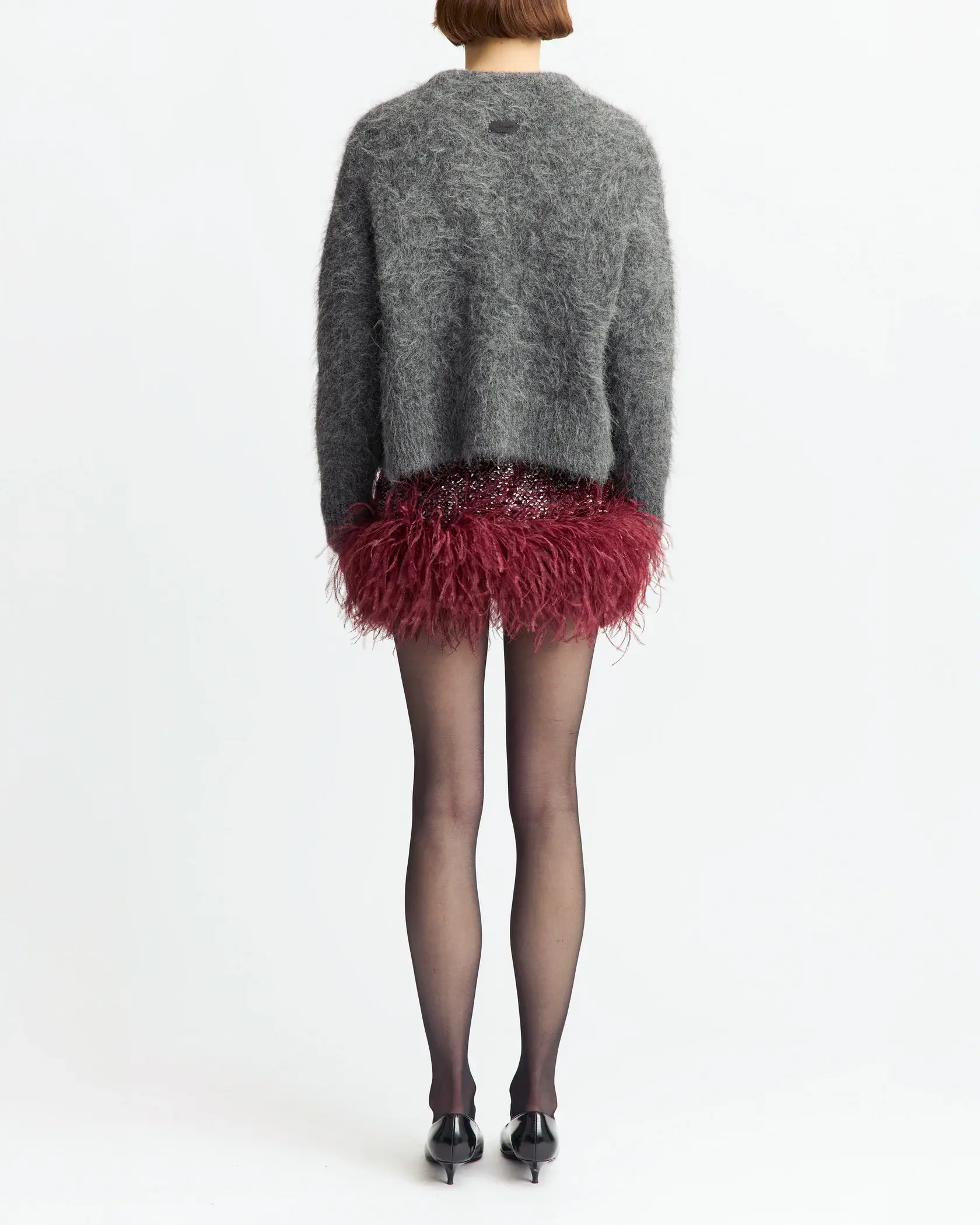 Cut to fall high above the knee, it's finished with a feathered hem that adds softness and movement to its clean, structured shape.