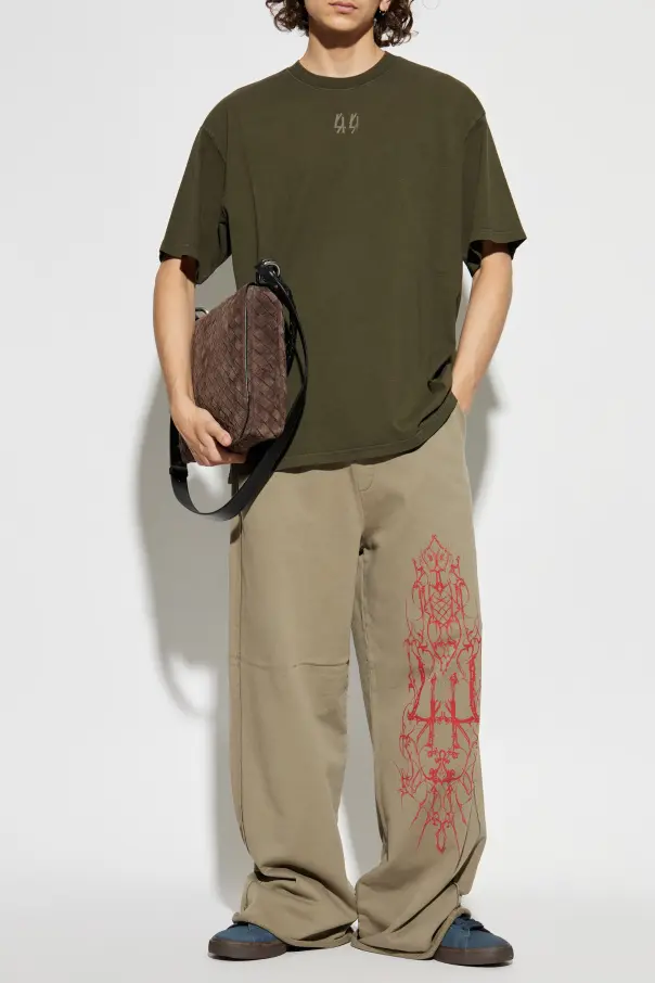 The 44 Label Group Logo T-shirt captivates with striking visual artistry and impeccable craftsmanship. Fashioned in a vibrant green hue, its relaxed silhouette features a classic crew neck and short sleeves—an embodiment of effortless modernity. Central to the front lies a stylized “44” logo in a luminous contrasting tone, while the reverse reveals a compelling graphic motif—suggestive of a bold face or mask—rendered in deeper green. Above and below, uniquely distorted “HORROR” and “SORROW” inscriptions impart avant-garde flair, evoking the rebellious spirit of techno-inspired streetwear.