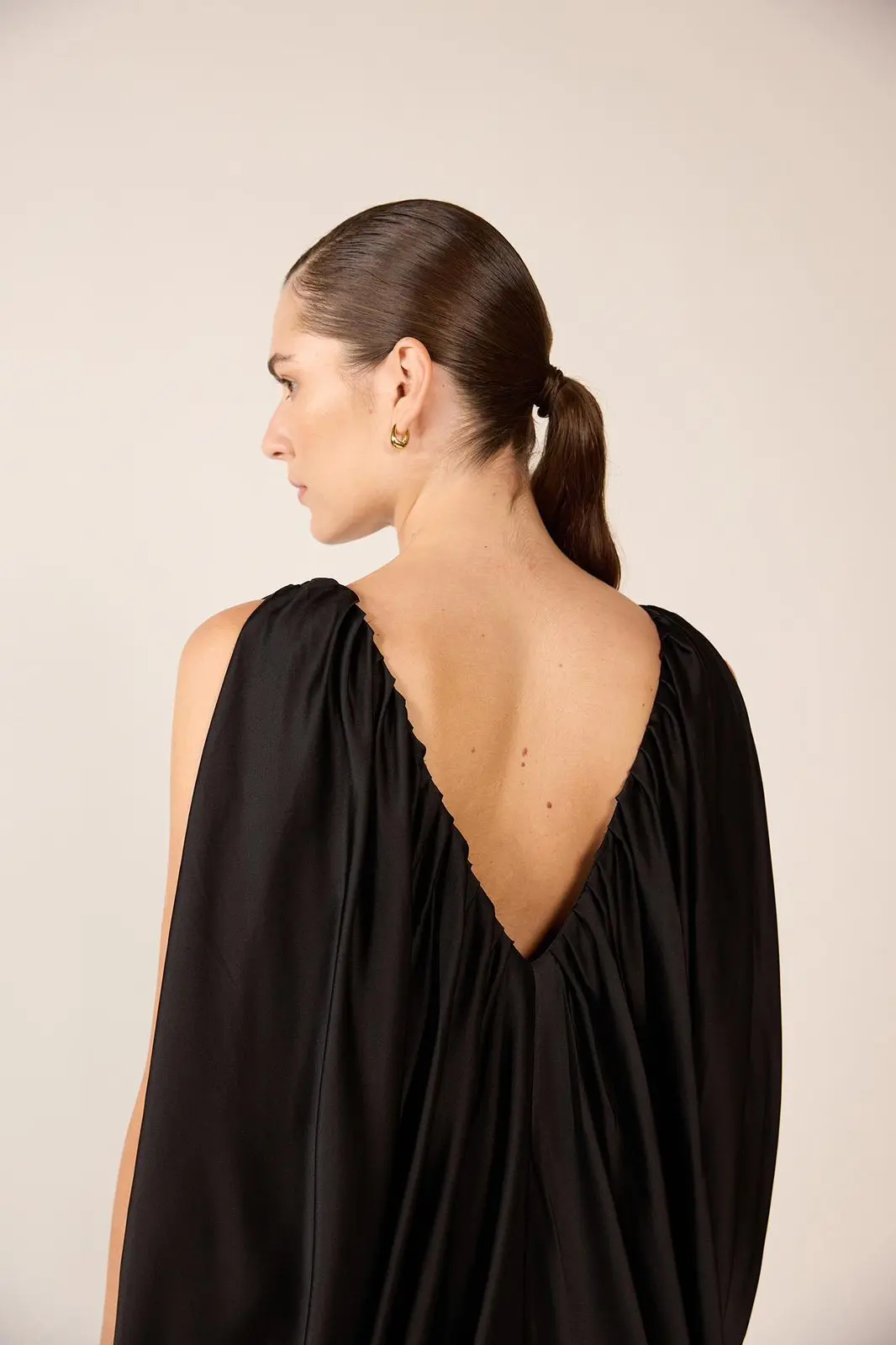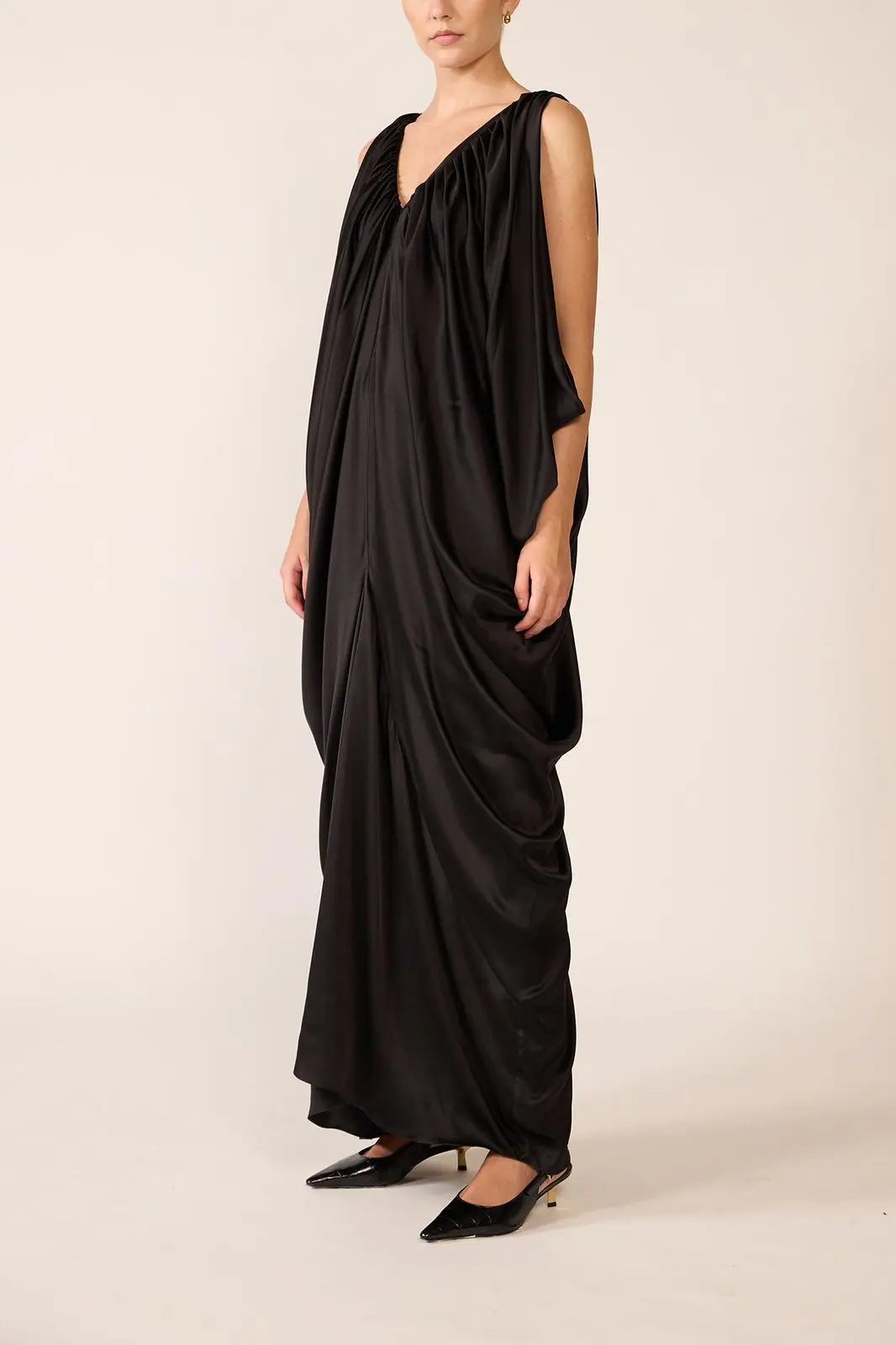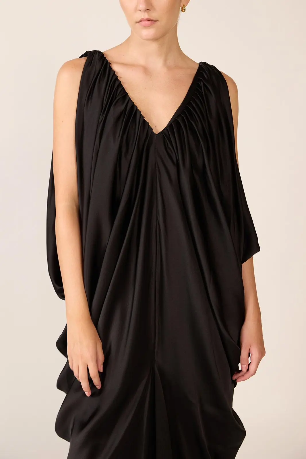 V NECK DRAPE DRESS