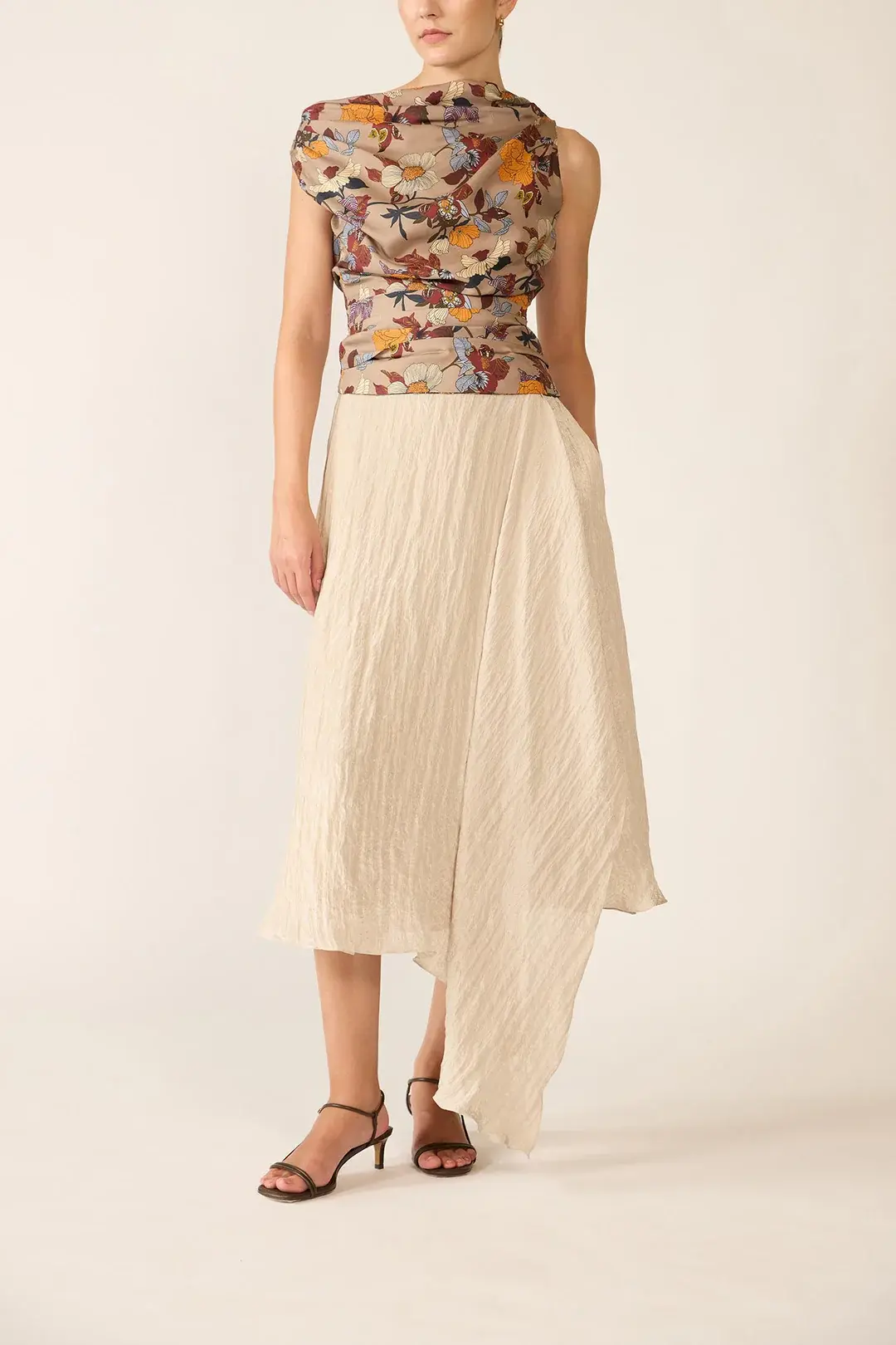 Made from luxurious silk twill with pleats that sculpt the silhouette. The off-shoulder neckline of this top adds a refined, feminine touch.