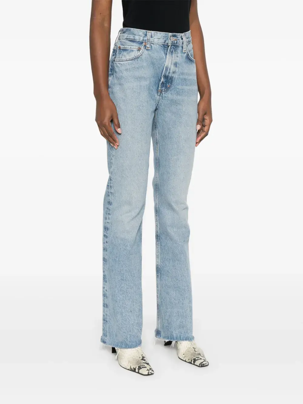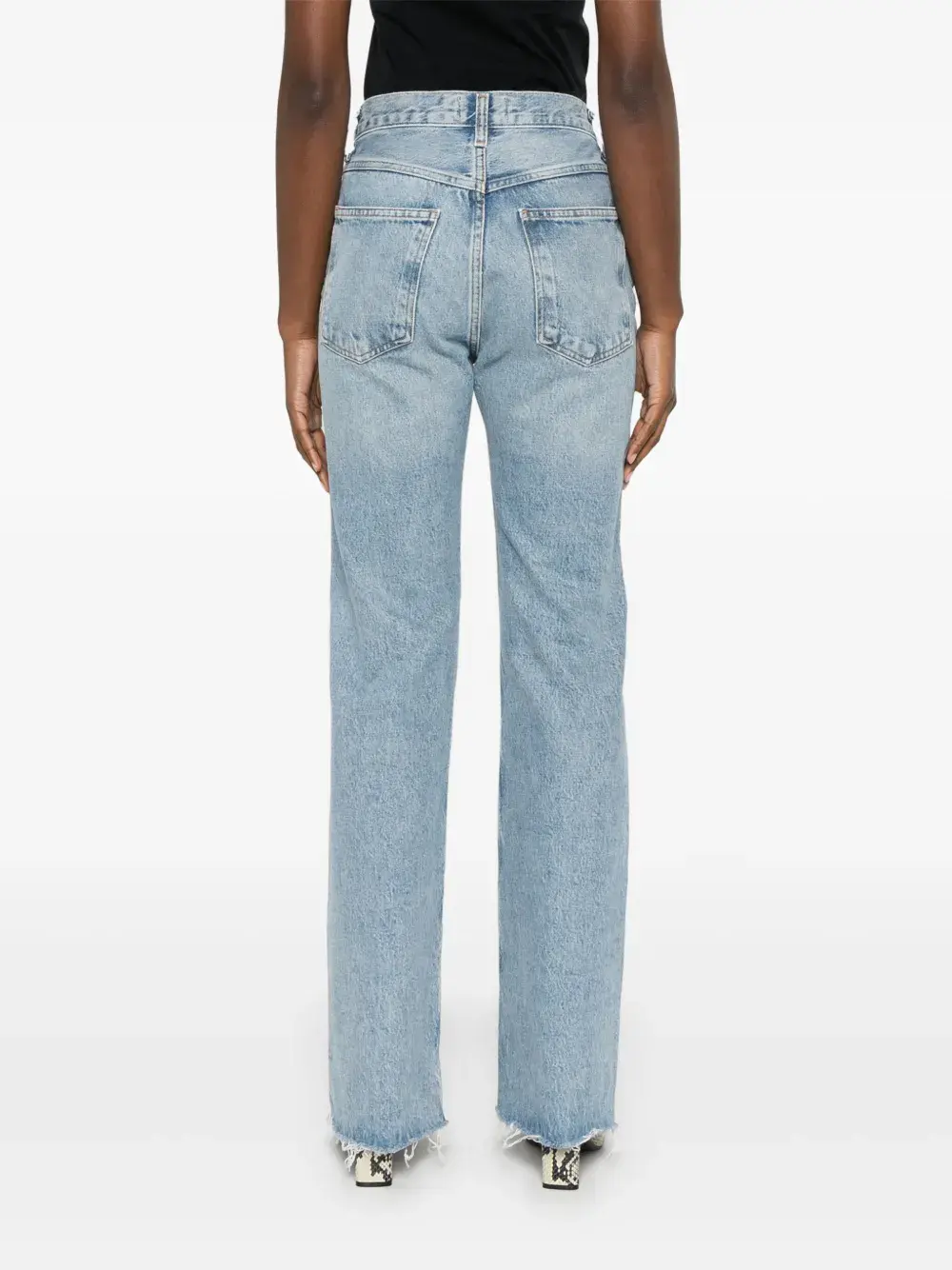 blue front button and zip fastening belt loops classic five pockets straight leg