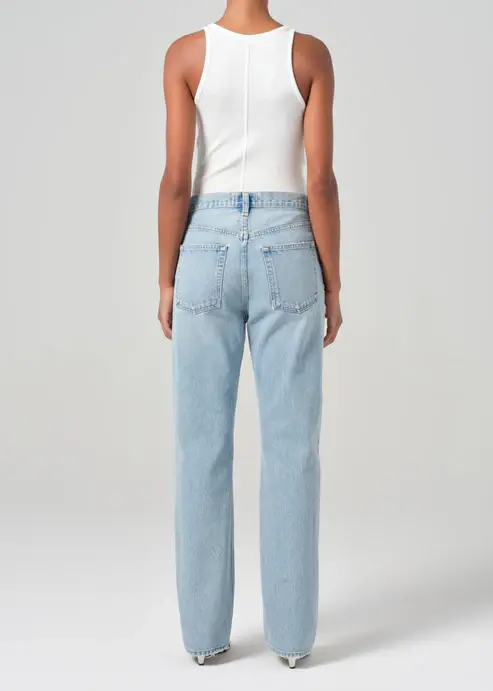 The V-Waist Kelly reimagines the iconic Kelly jean with a sharp, pitched V-waist for a flattering, sculpted fit. Featuring a high-rise, relaxed straight leg and a vintage-inspired extended inseam, this style offers a perfect balance of comfort and chic appeal. Crafted from regenerative cotton, the V-Waist Kelly combines effortless sophistication with sustainable design. Pair it with a sleek bodysuit or casual tee for a modern, versatile look.