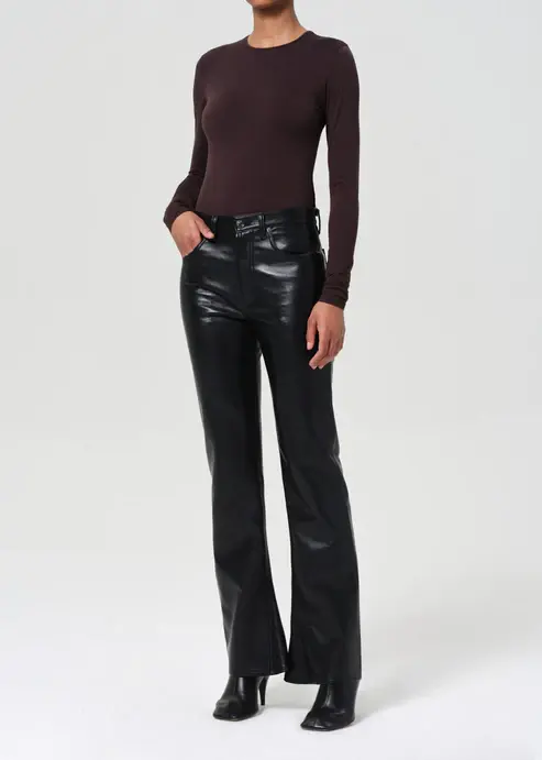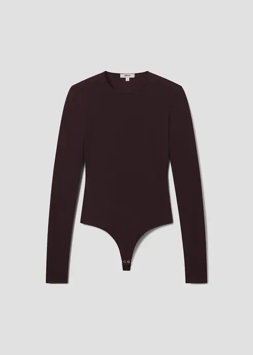 Looks Like: Dark brown long sleeve crewneck bodysuit