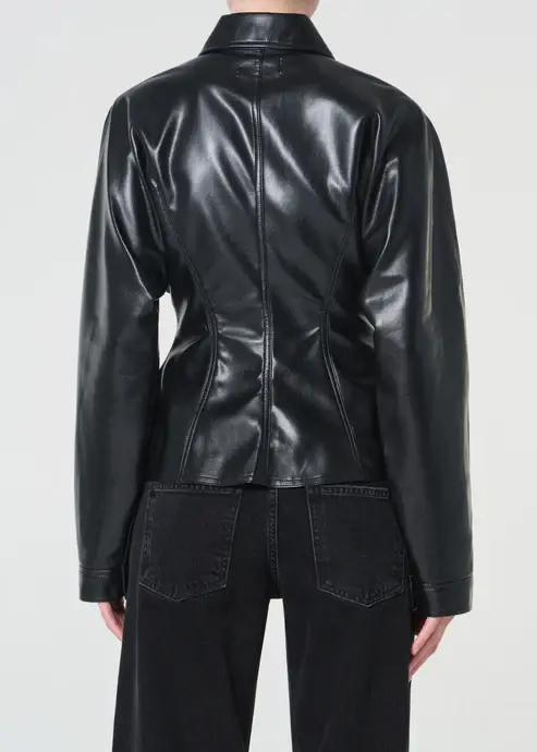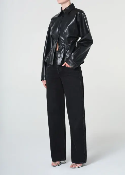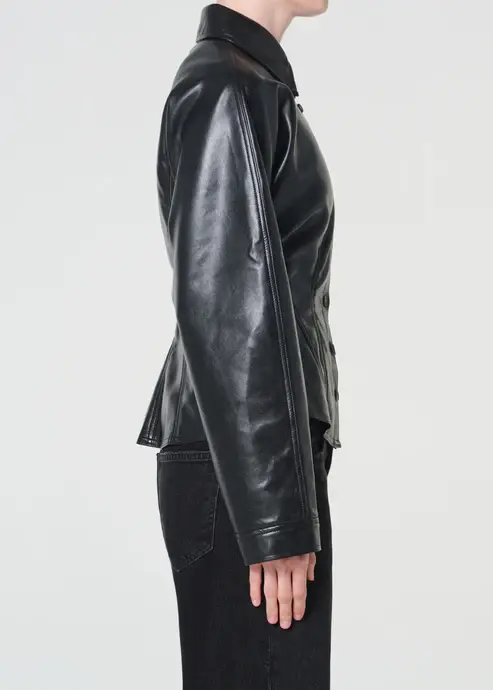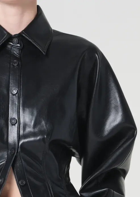 Looks Like: Luxe black recycled leather shirt with matte finish