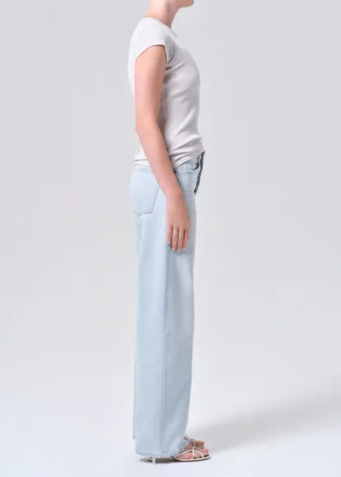 The Arc Jean – 32" combines modern shape with a soft, lived-in feel. Designed in a light pale indigo wash, it features a mid-rise waist and a relaxed wide-leg silhouette that drapes naturally for an easy, timeless look. Crafted from non stretch, weightless regenerative cotton denim washed down for a super soft feel, it delivers comfort and movement while maintaining a clean, structured finish. Style it with a simple tee and slides for an effortless spring uniform, or pair with a crisp shirt for relaxed sophistication.