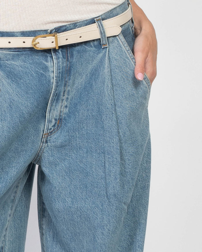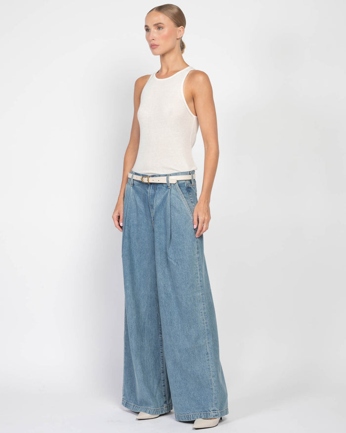 FITS LOW SLUNG ON THE HIPS RELAXED STYLE WIDE LEG PLEAT DETAILING ZIPPER FLY MACHINE WASH COLD; TUMBLE DRY LOW 70% LYOCELL, 30% PRE CONSUMER RECYCLED COTTON