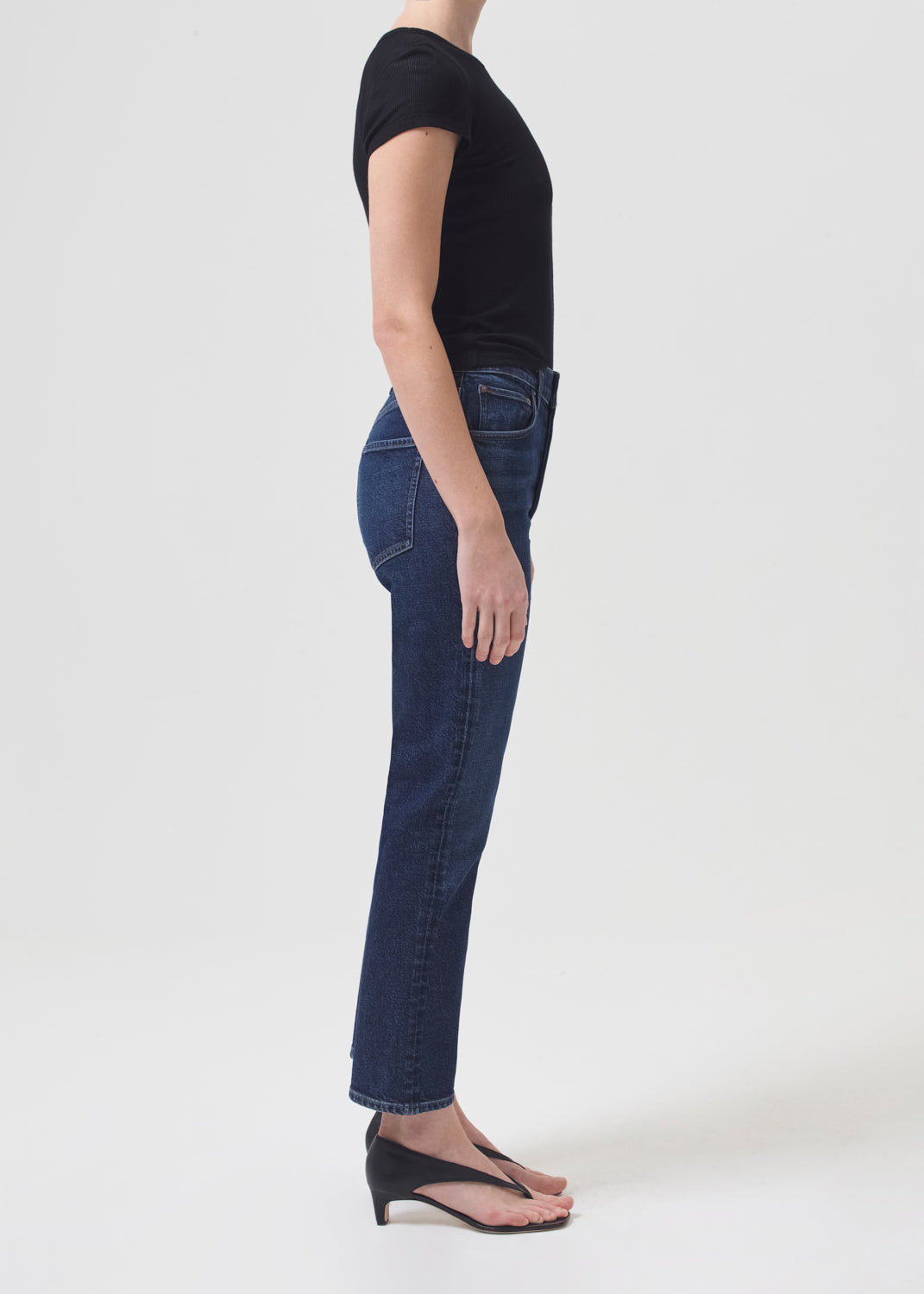 Our signature slim straight leg. With a better-than-vintage aesthetic, the Riley is an iconic brand favorite. The flattering high-rise and straight leg fits close to the body for a universally loved look. Available in stretch and non-stretch denim.