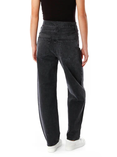 Straight fit jeans with a cut-out waistband High waist To close with a button placket 5-pocket style