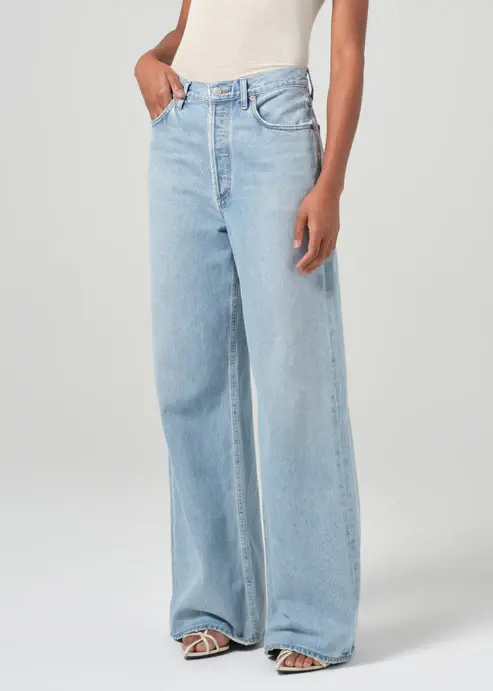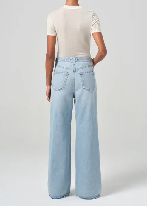 Featuring a waist accentuating high-rise, a relaxed cut through the hips and a wide leg. Style it with a sleek tee or ribbed knit.