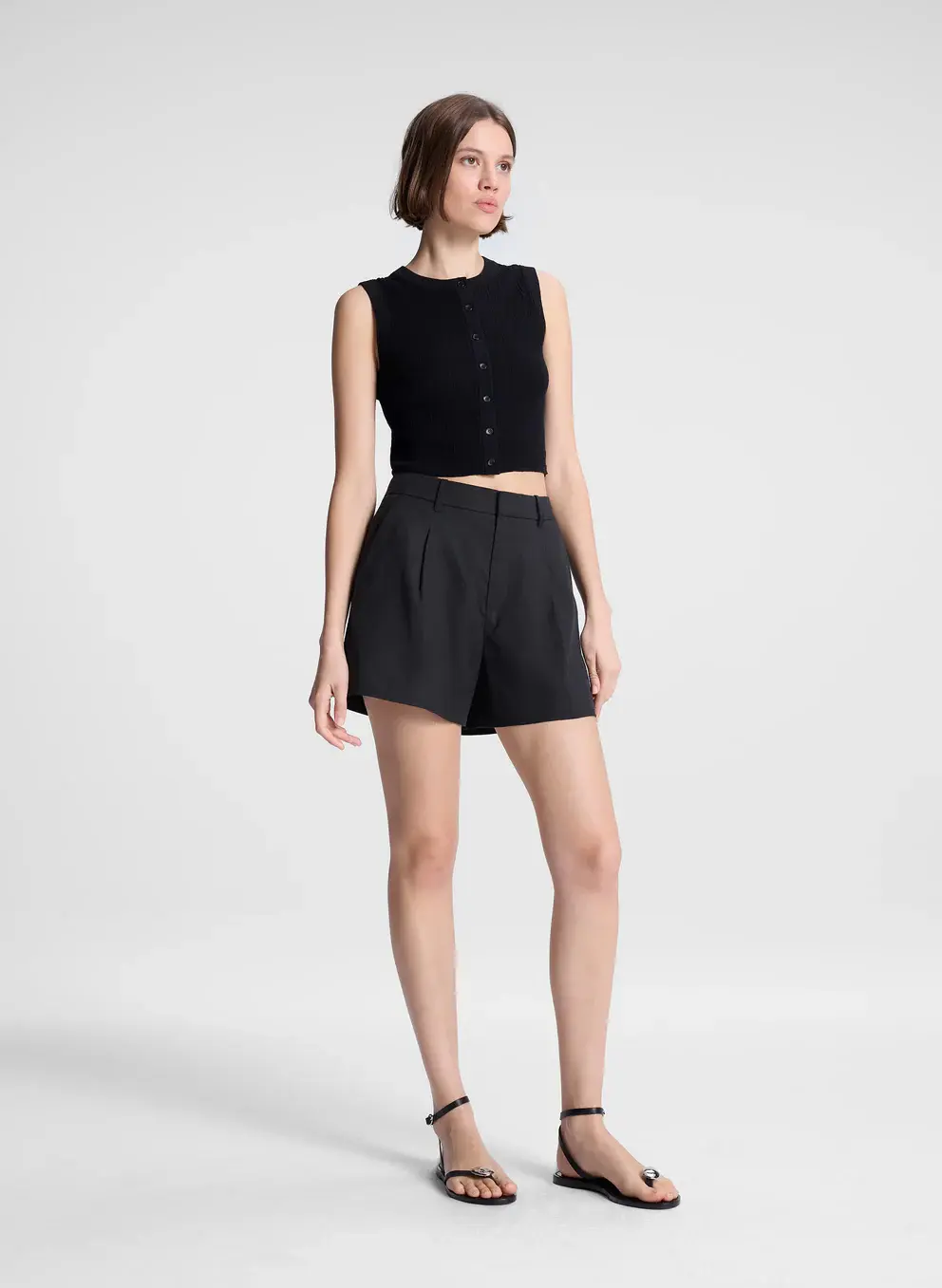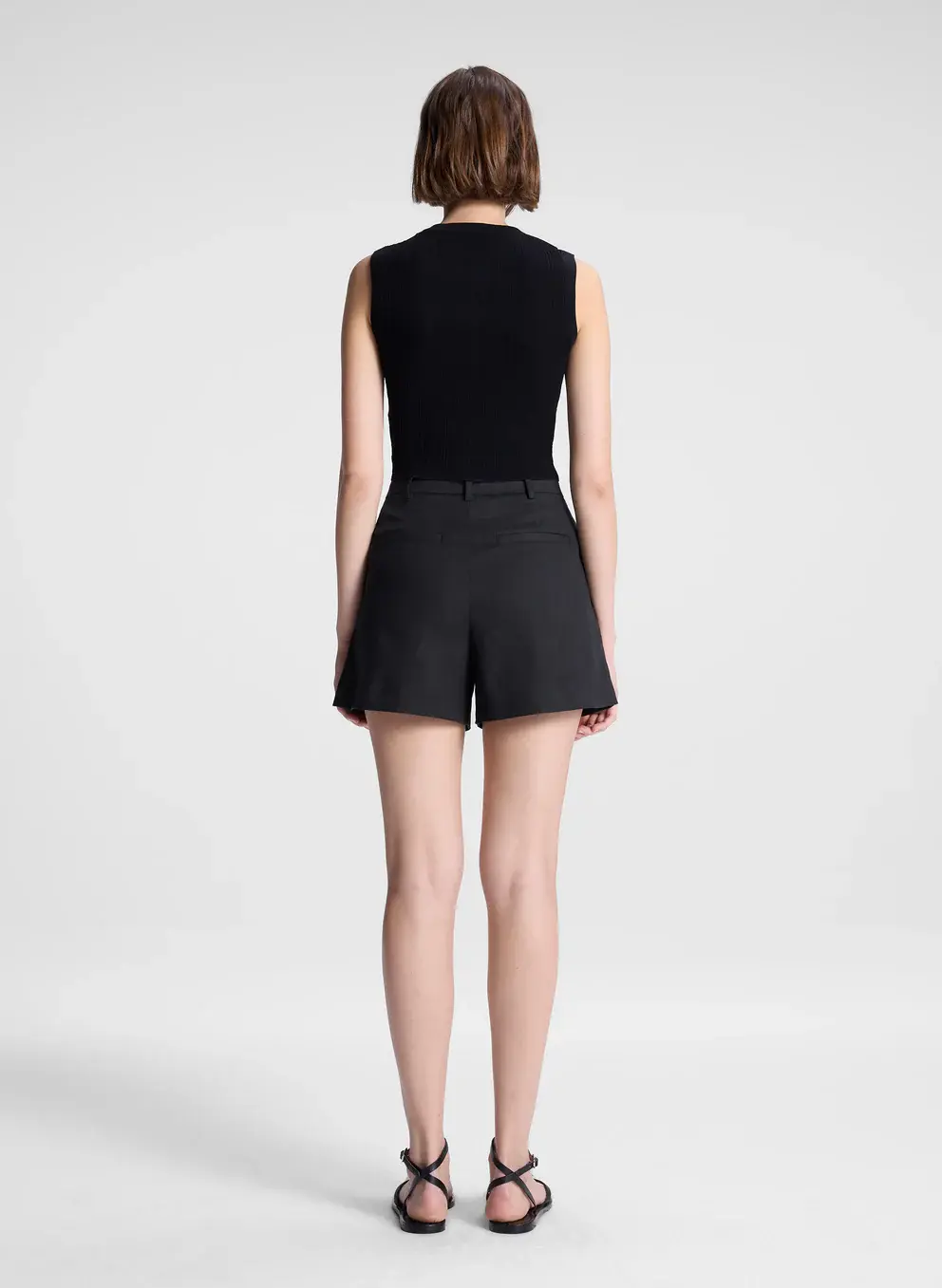 The Charles Short is crafted from Italian stretch linen cotton—a breathable blend with subtle give and a relaxed twill texture—in classic black. This tailored silhouette features a high-rise waist with elegant front pleating and relaxed wide legs that hit mid-thigh. Side slash pockets and back welt pockets add refined functionality.