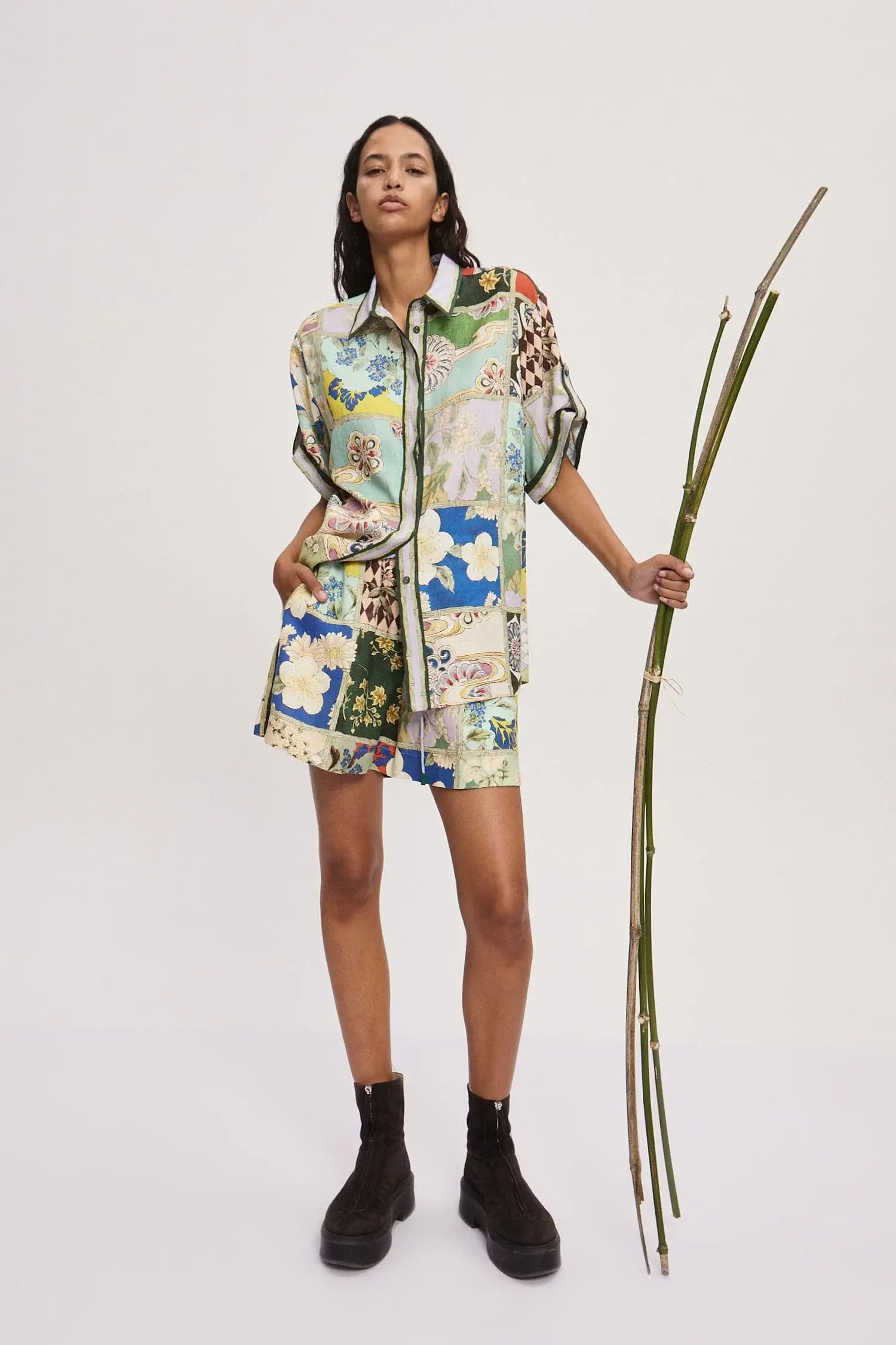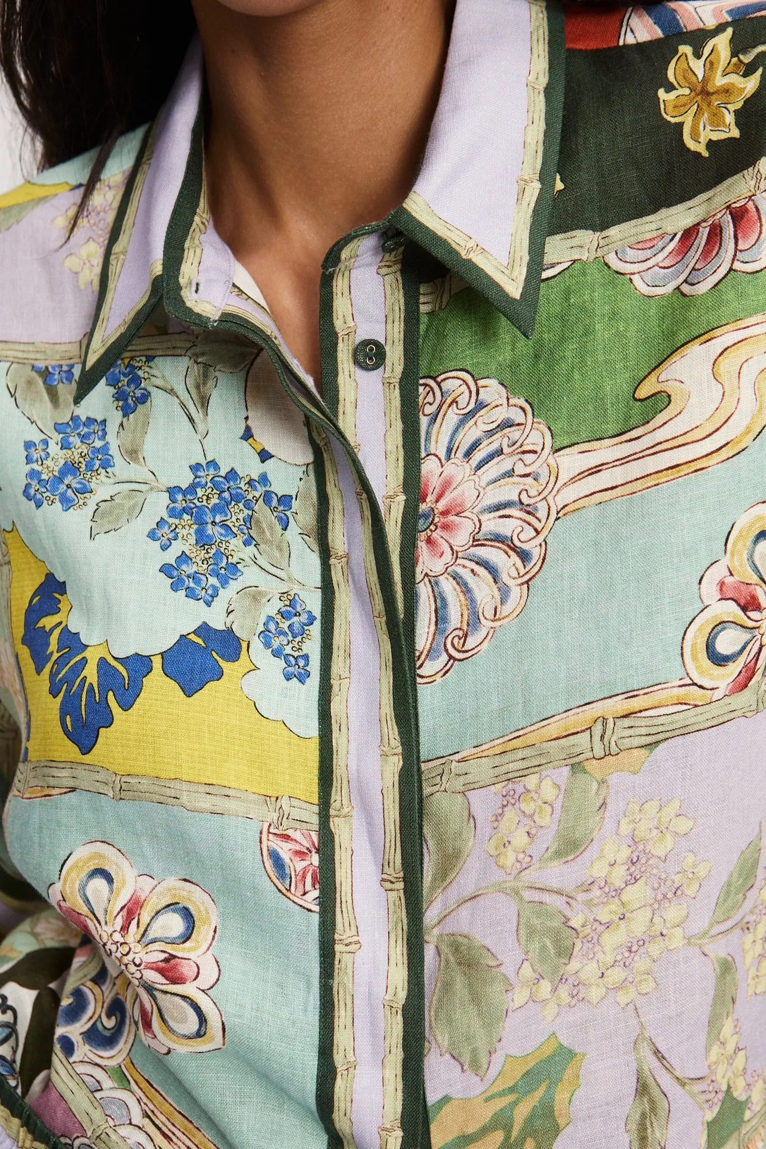 Pointed collar and stand Rolled sleeve hem with tabs Concealed placket with self-covered buttons Refer to size guide for garment measurements Refer to flat lay product shots for true product colour representation