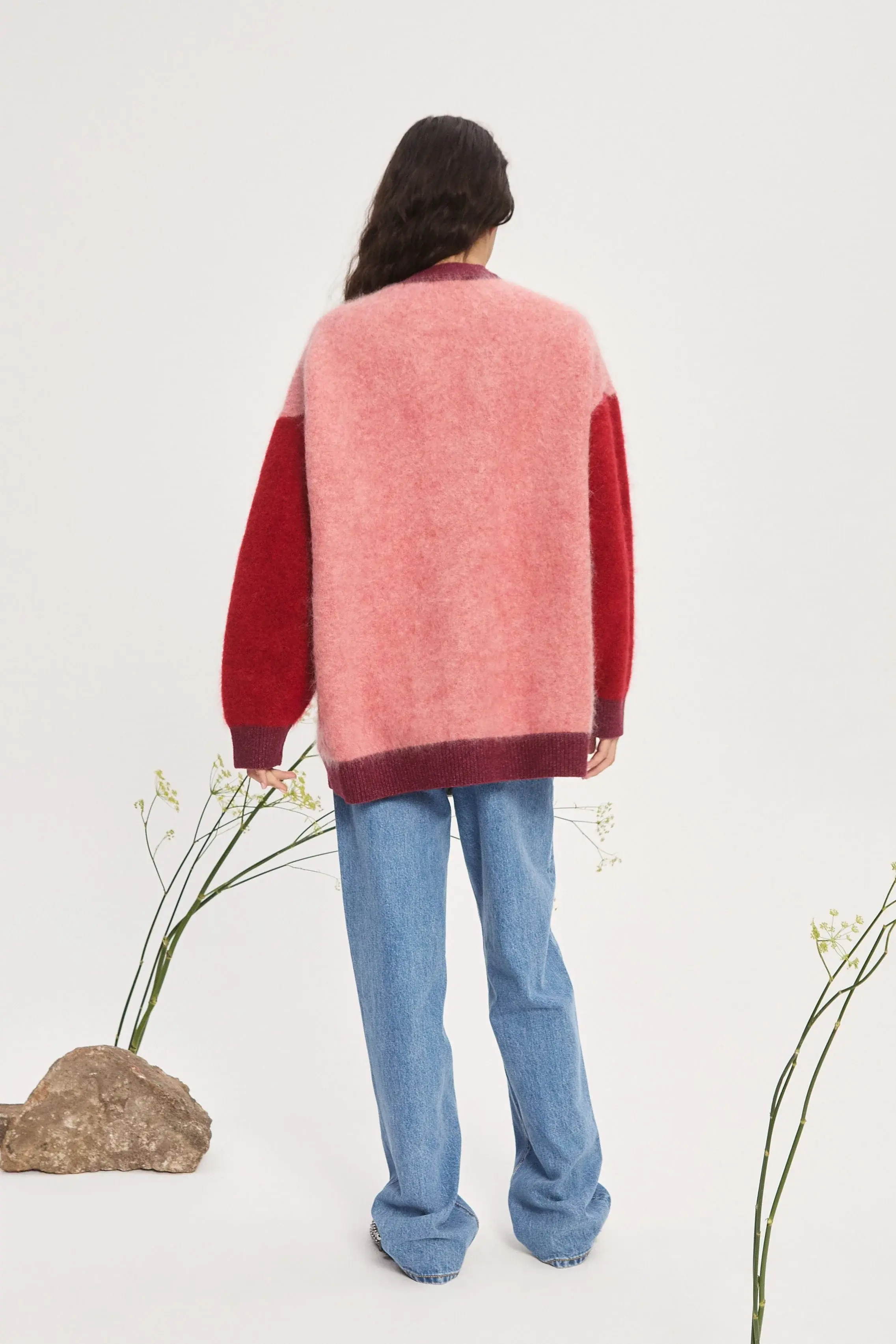 Artwork in collaboration with Anouk Colantoni Oversized V-neck cardigan silhouette Dropped shoulder Placket with button closure Refer to size guide for garment measurements Refer to flat lay product shots for true product colour representation