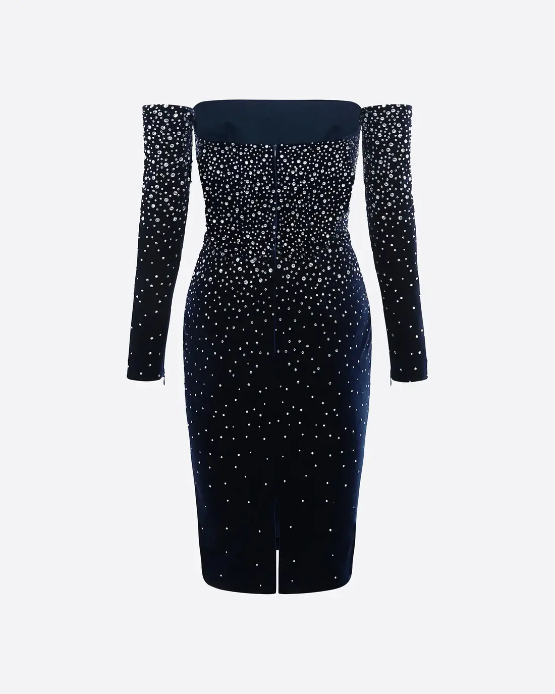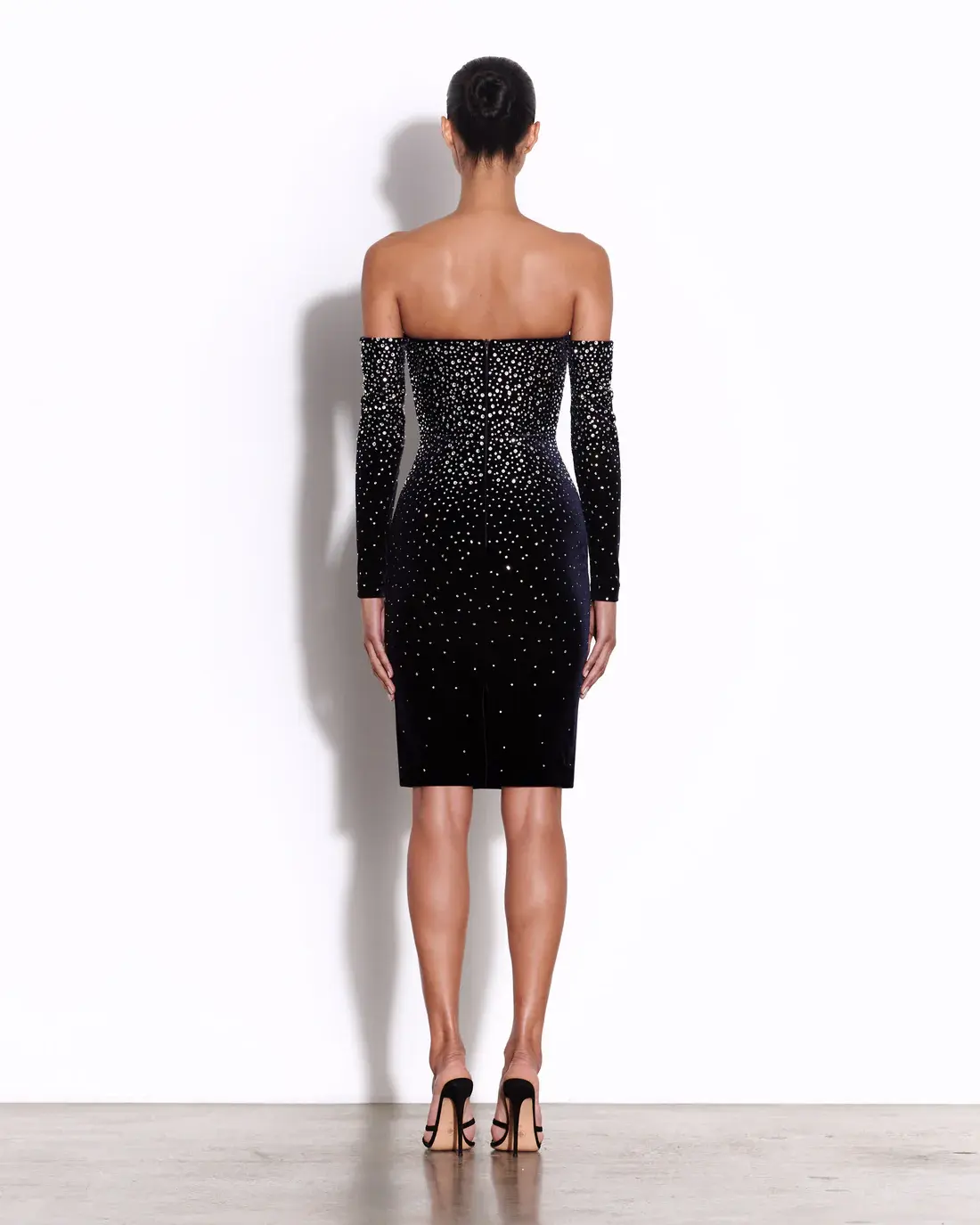 Long Sleeve Off Shoulder Dress in Crystal Velvet