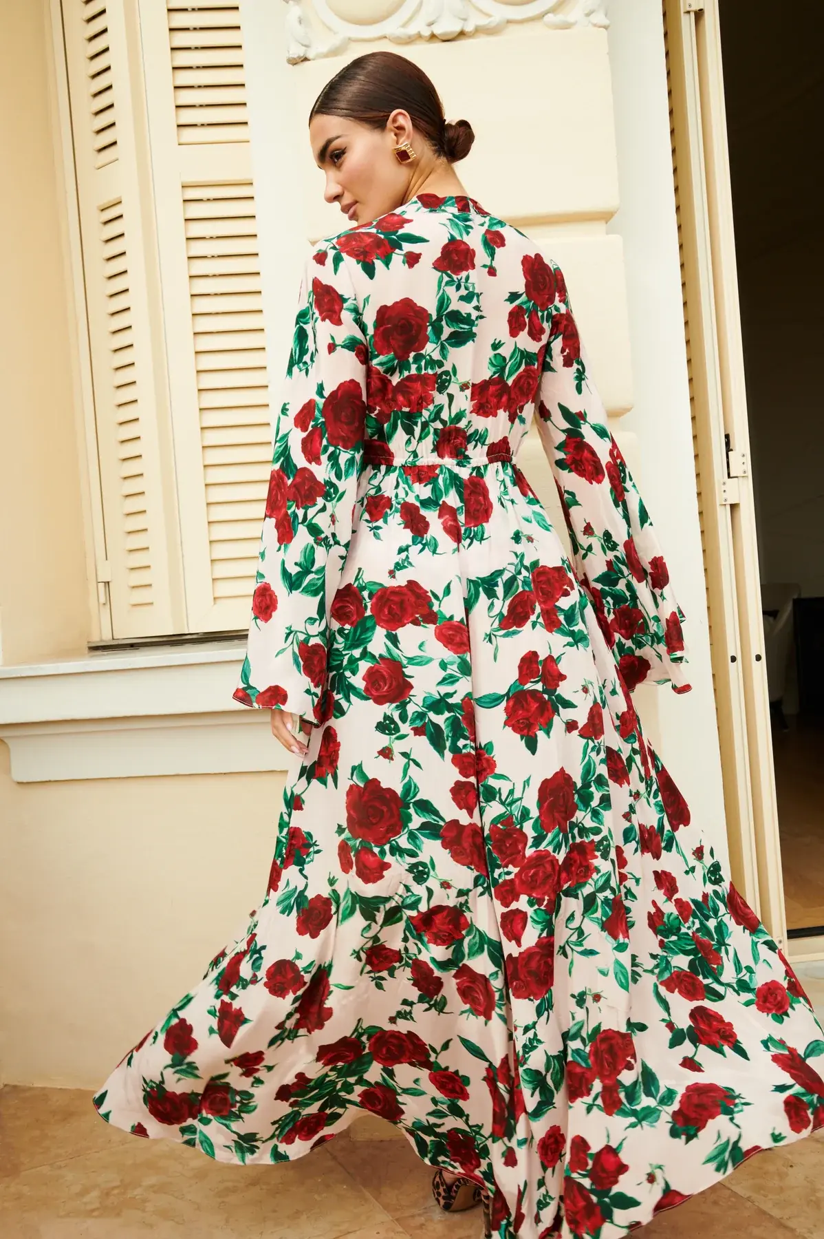 100% viscose Loose, flowy fit Floor-length design Wide sleeves for a dramatic effect
