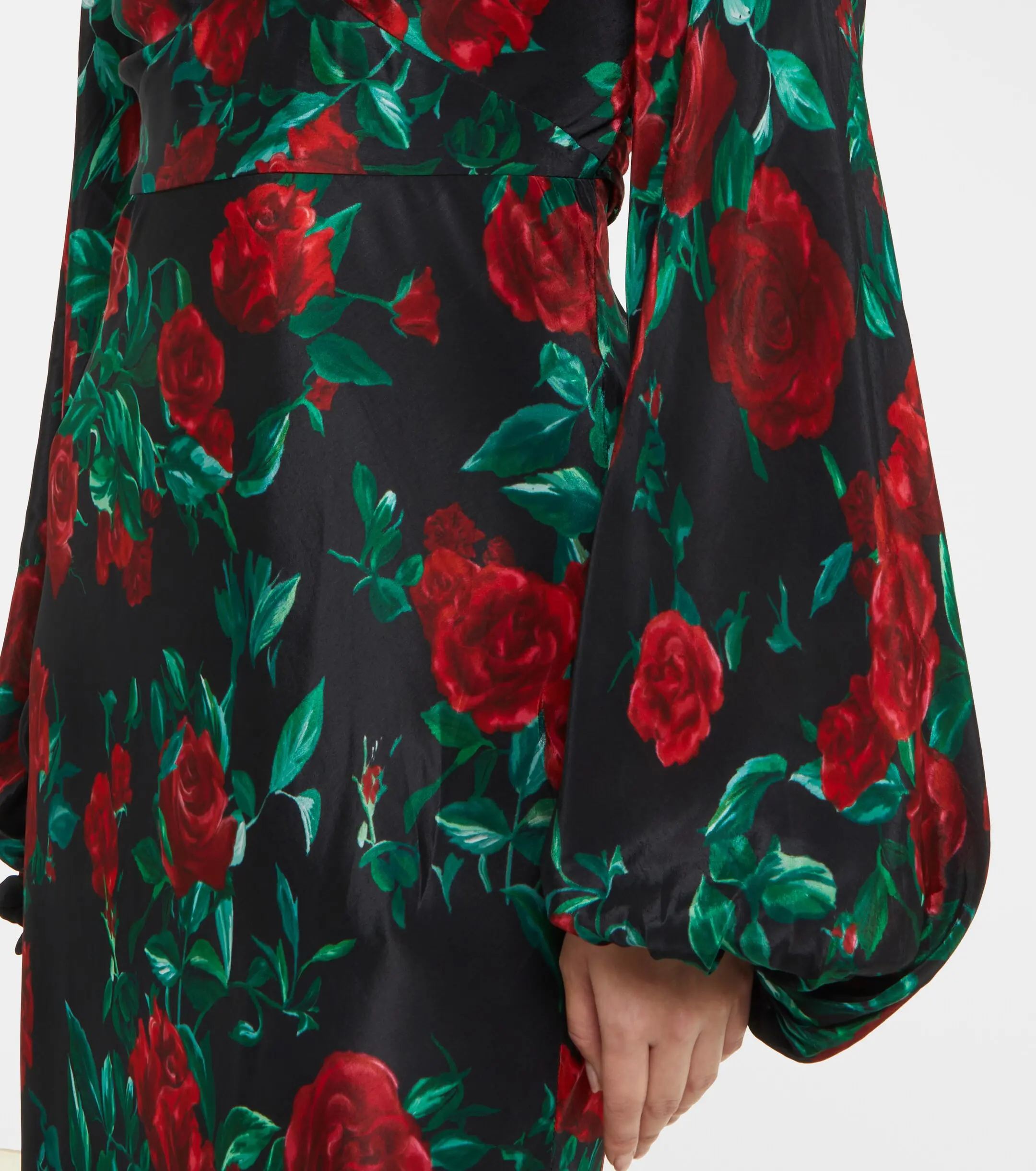 Material: 100% viscose Care instructions: dry clean Made in China Designer color name: Black Rose Print Material II: 100% polyester Closure: invisible zipper