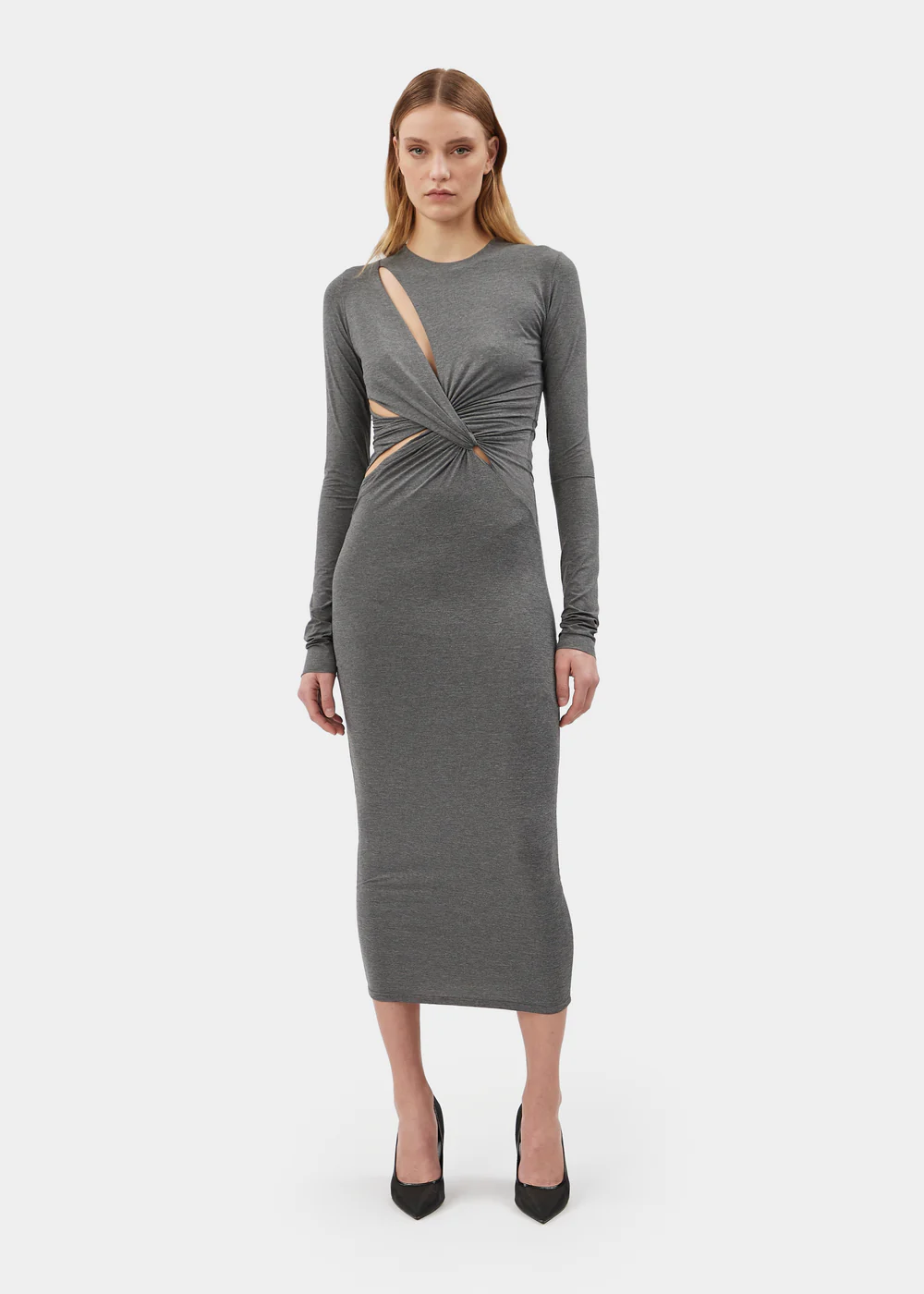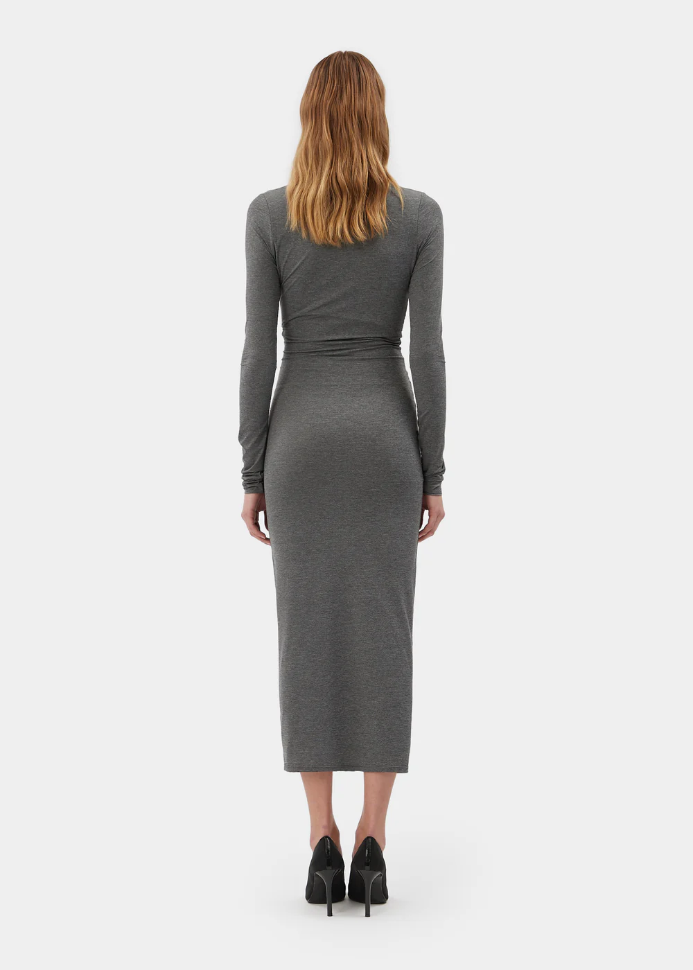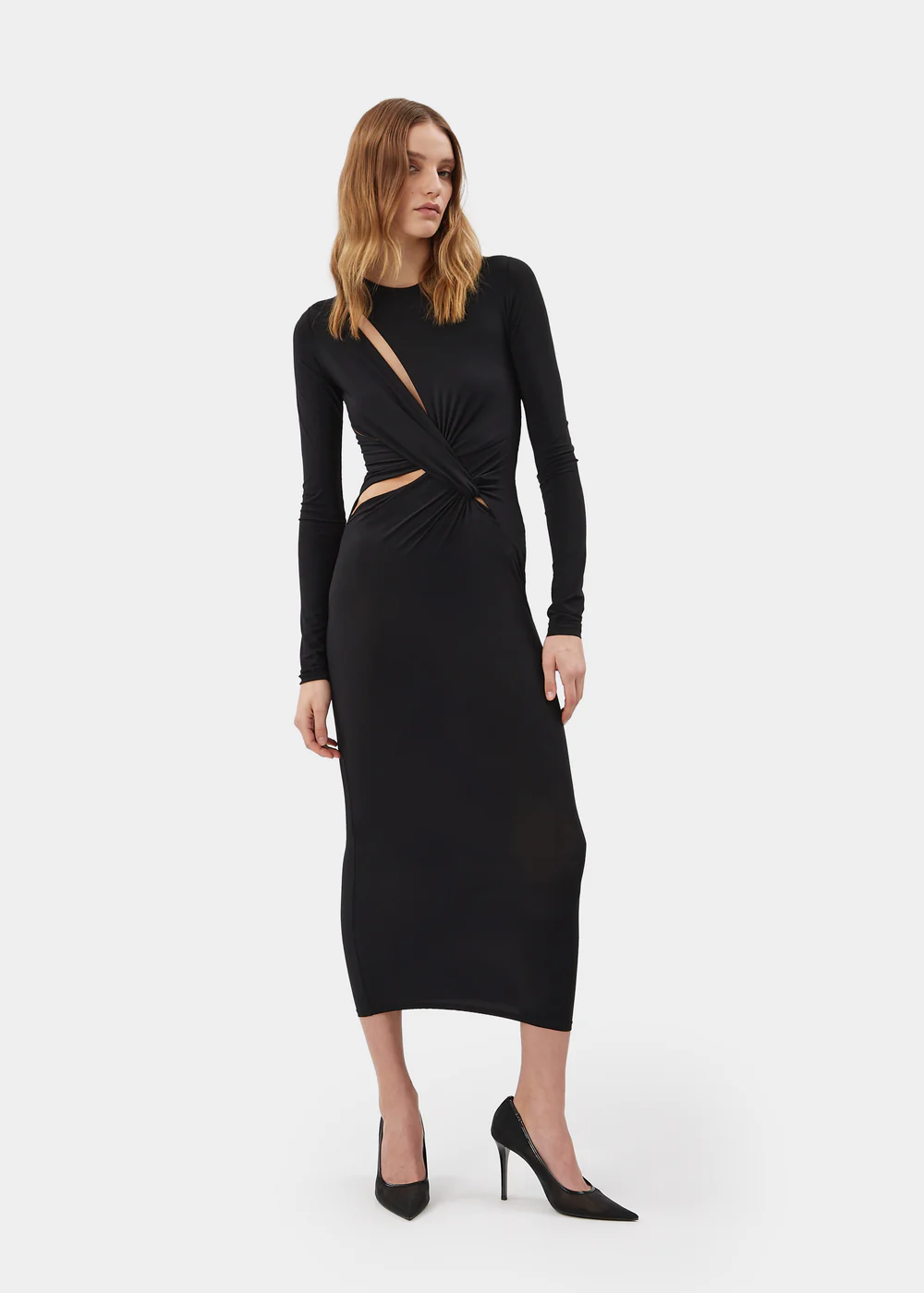 The Bea Long Dress exudes modern elegance with its luxurious stretch jersey fabric. This stunning dress features long sleeves and eye-catching asymmetrical draped cutouts, creating a chic and sophisticated look. Perfect for any elegant occasion, the Bea dress ensures you make a stylish statement.