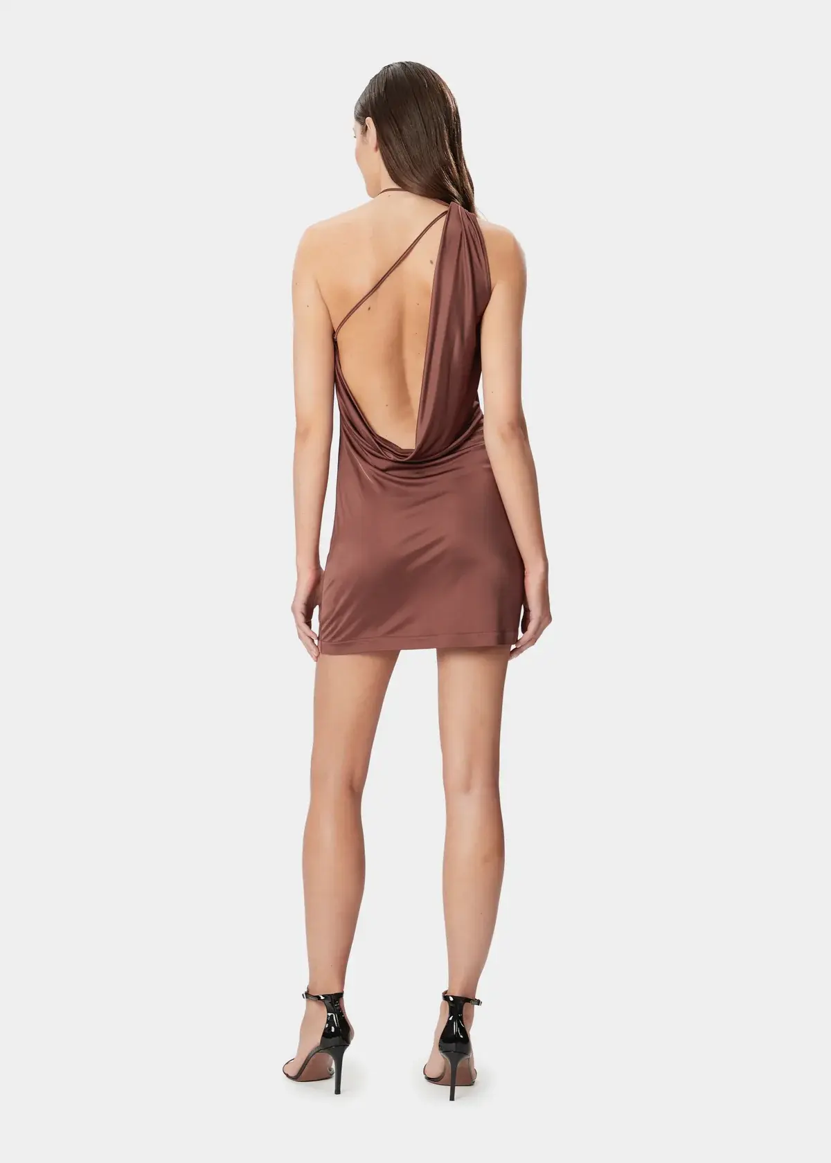 The RAVI SATIN is a mini dress crafted from fluid satin jersey, featuring an asymmetric neckline and a softly draped back with an adjustable tie for a customizable fit. A timeless silhouette that combines fluid elegance with contemporary sophistication.
