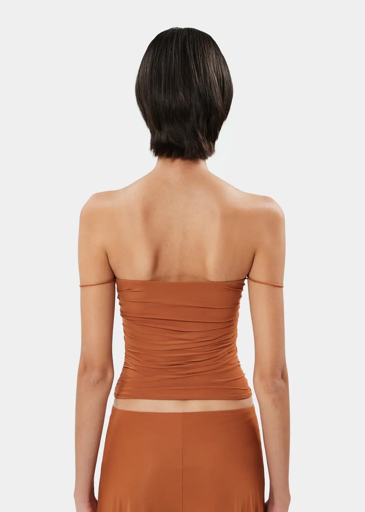 The ROSIE draped bustier top in stretch jersey, featuring structured cups for a sculpted fit and elegant shape.