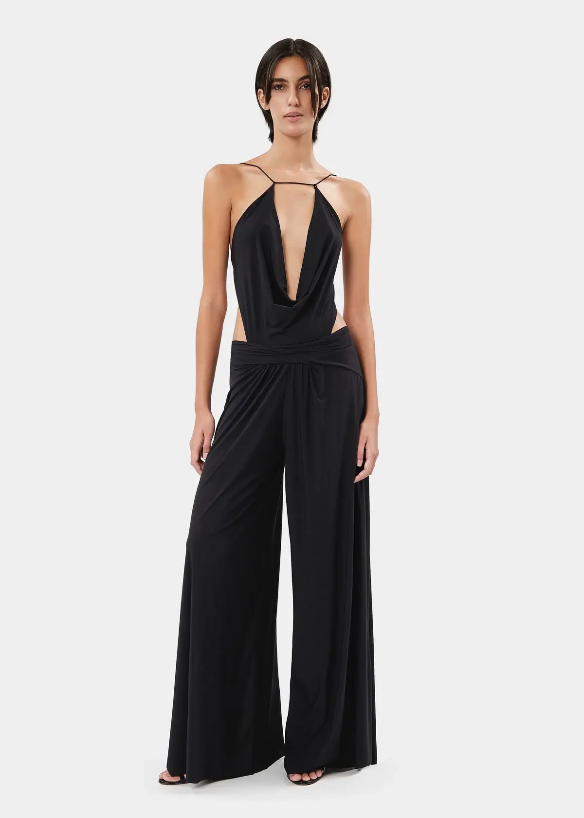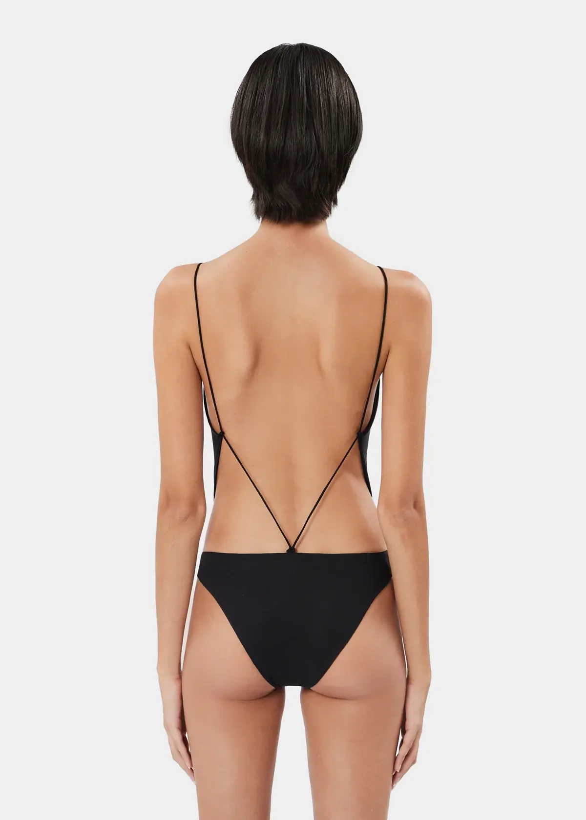 The ESTER BODY sleek bodysuit with a plunging neckline crafted from lightweight stretch jersey. Featuring adjustable back laces for a customized fit and offering medium coverage on the briefs.
