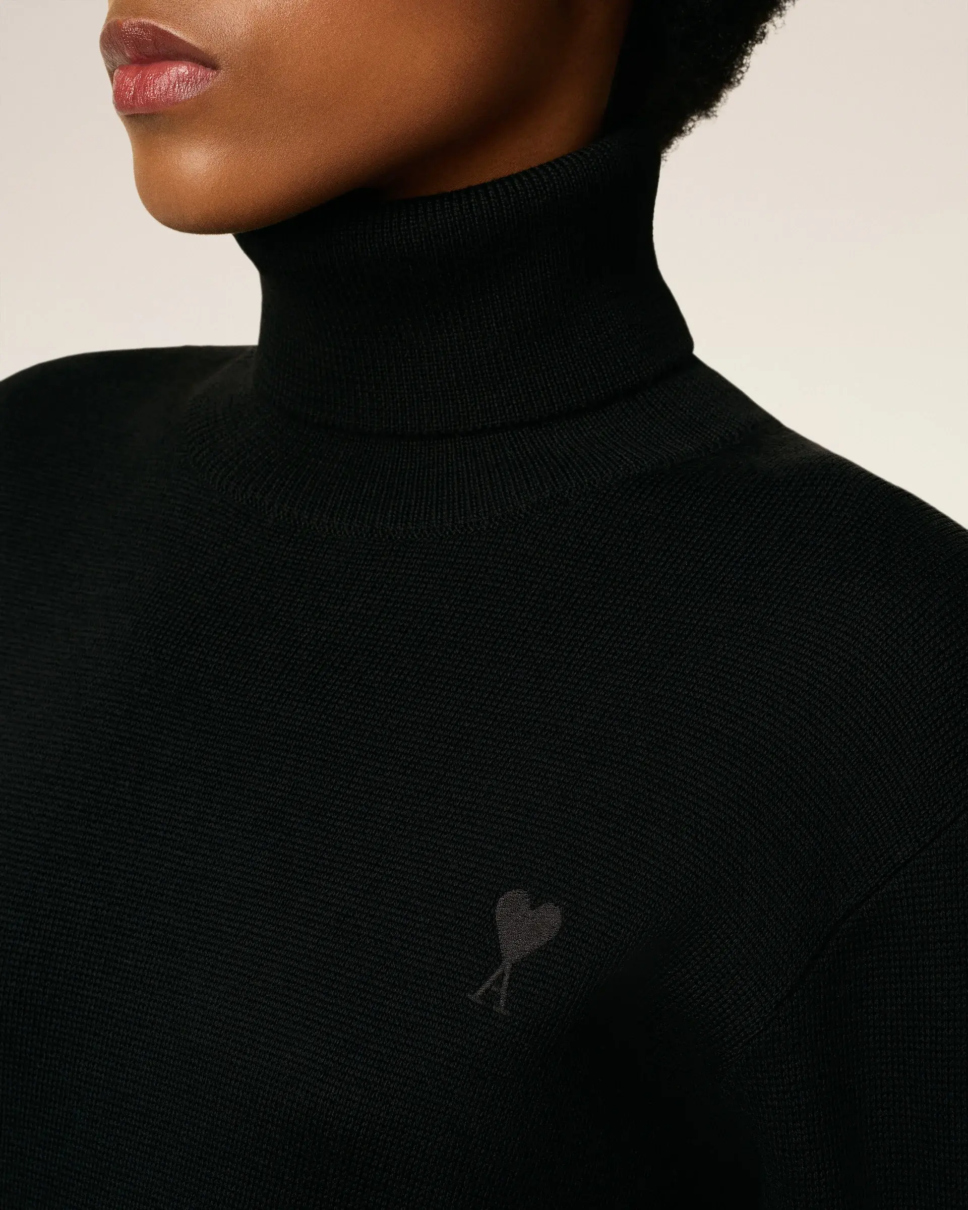 Turtle neck Ami de Coeur chest embroidery Jersey stitch 54 cm center back length (size S) Made in Portugal (with love)