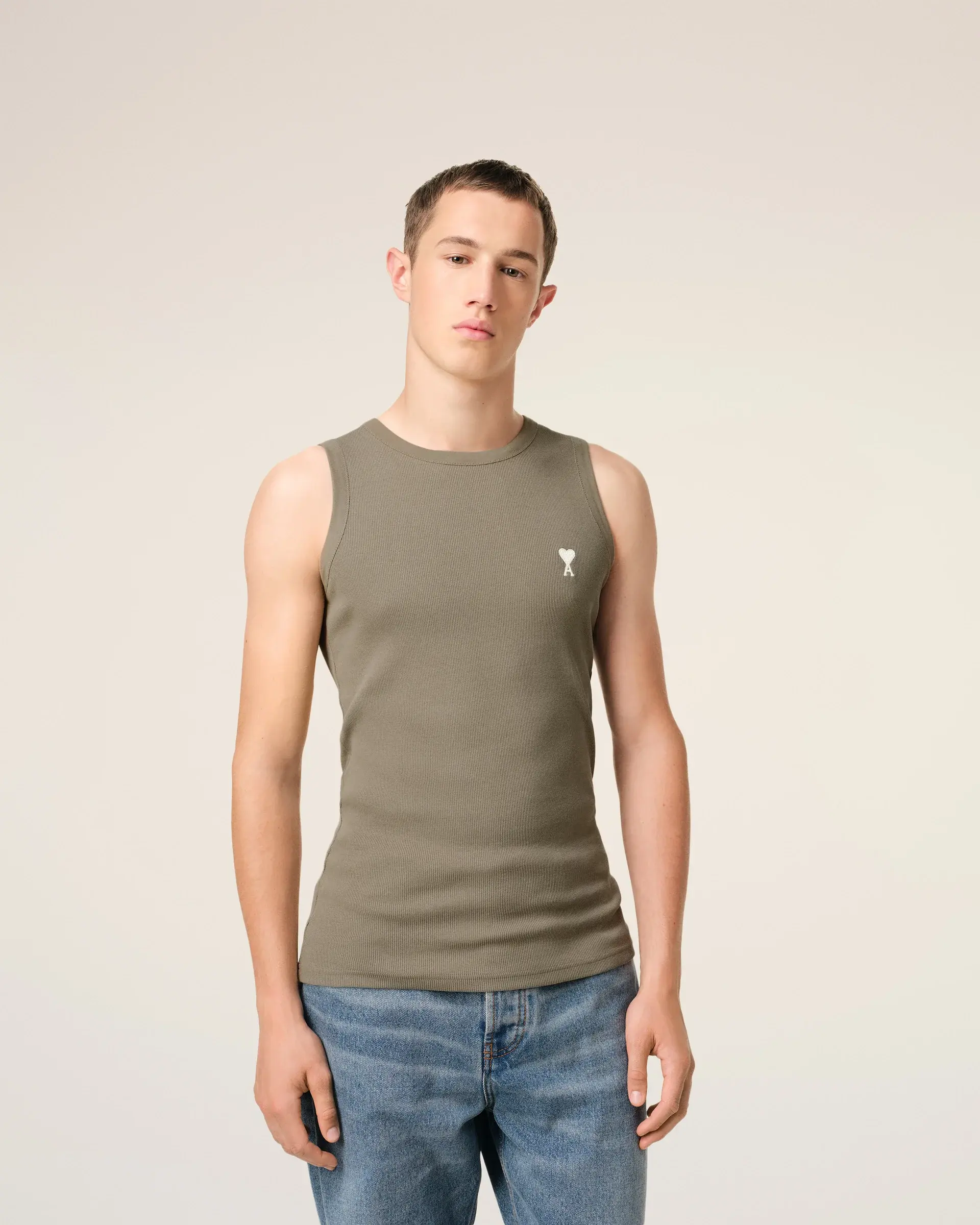 Classic fit 66 cm center back length (size M) Off white Ami de Coeur chest embroidery Tonal "AMI" embroidery under back neckline Made in Portugal (with love)