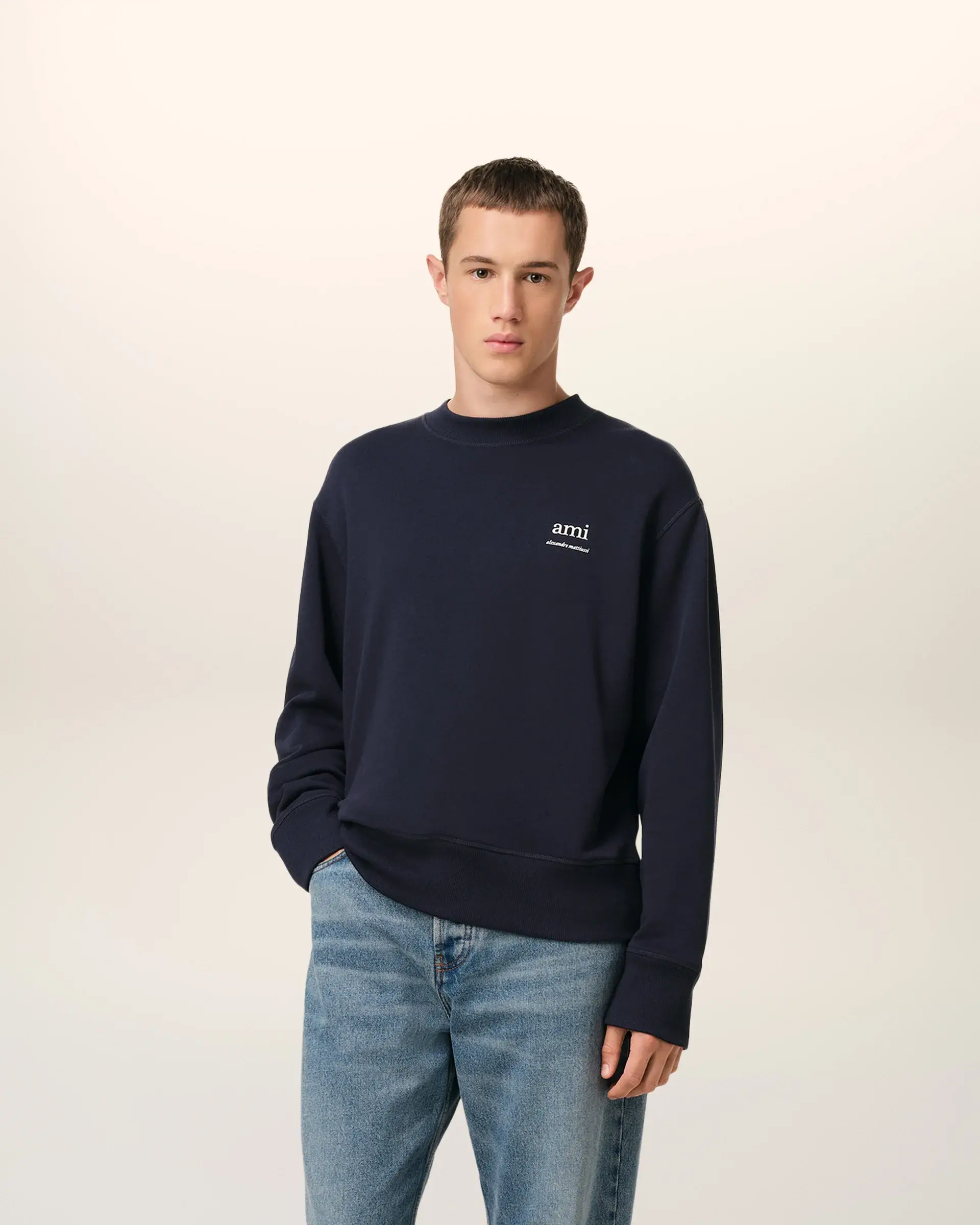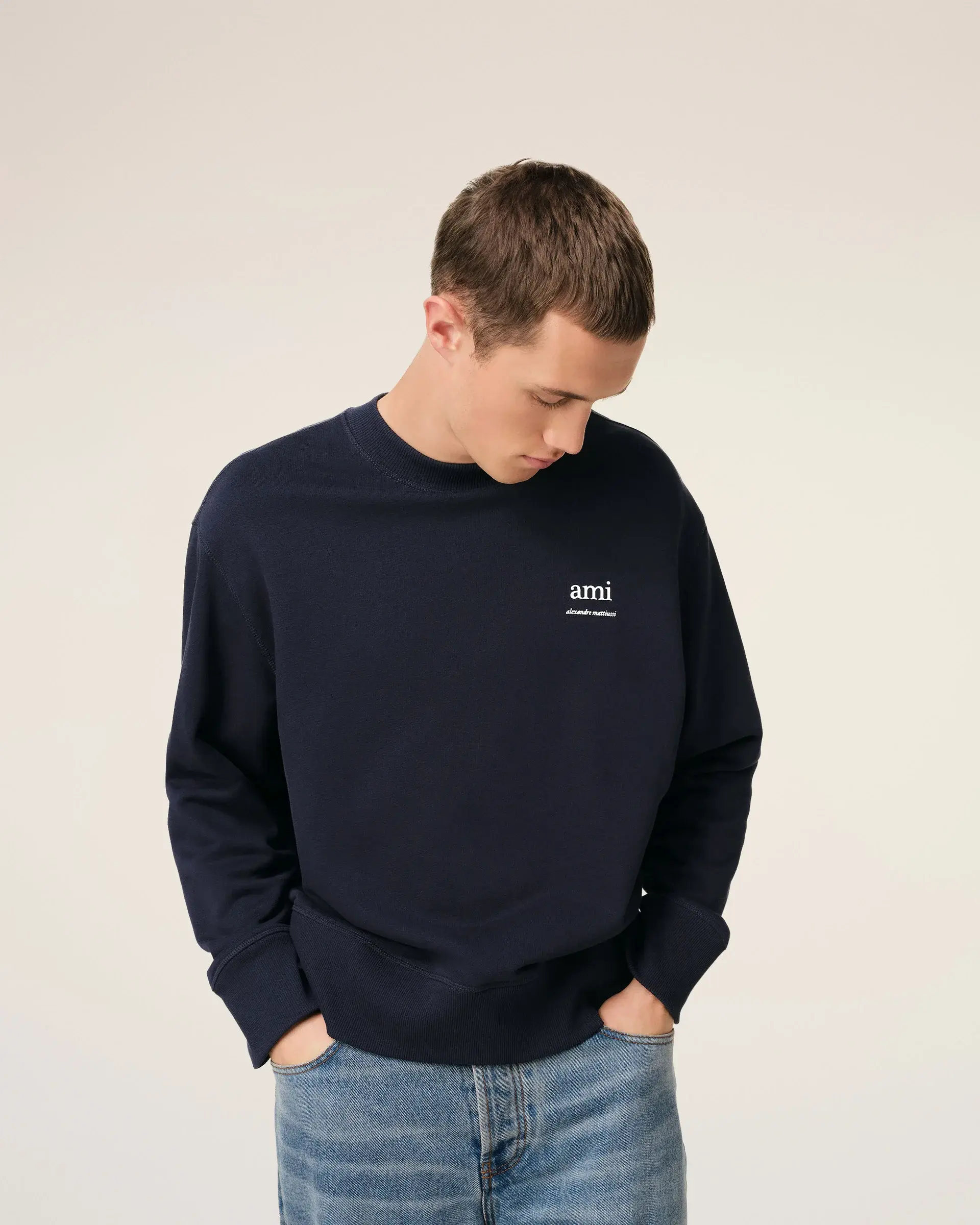 Oversize fit 65 cm center back length (size M) "ami alexandre mattiussi "off-white print Tonal Ami de Coeur embroidery under back neckline Made in Portugal (with love)