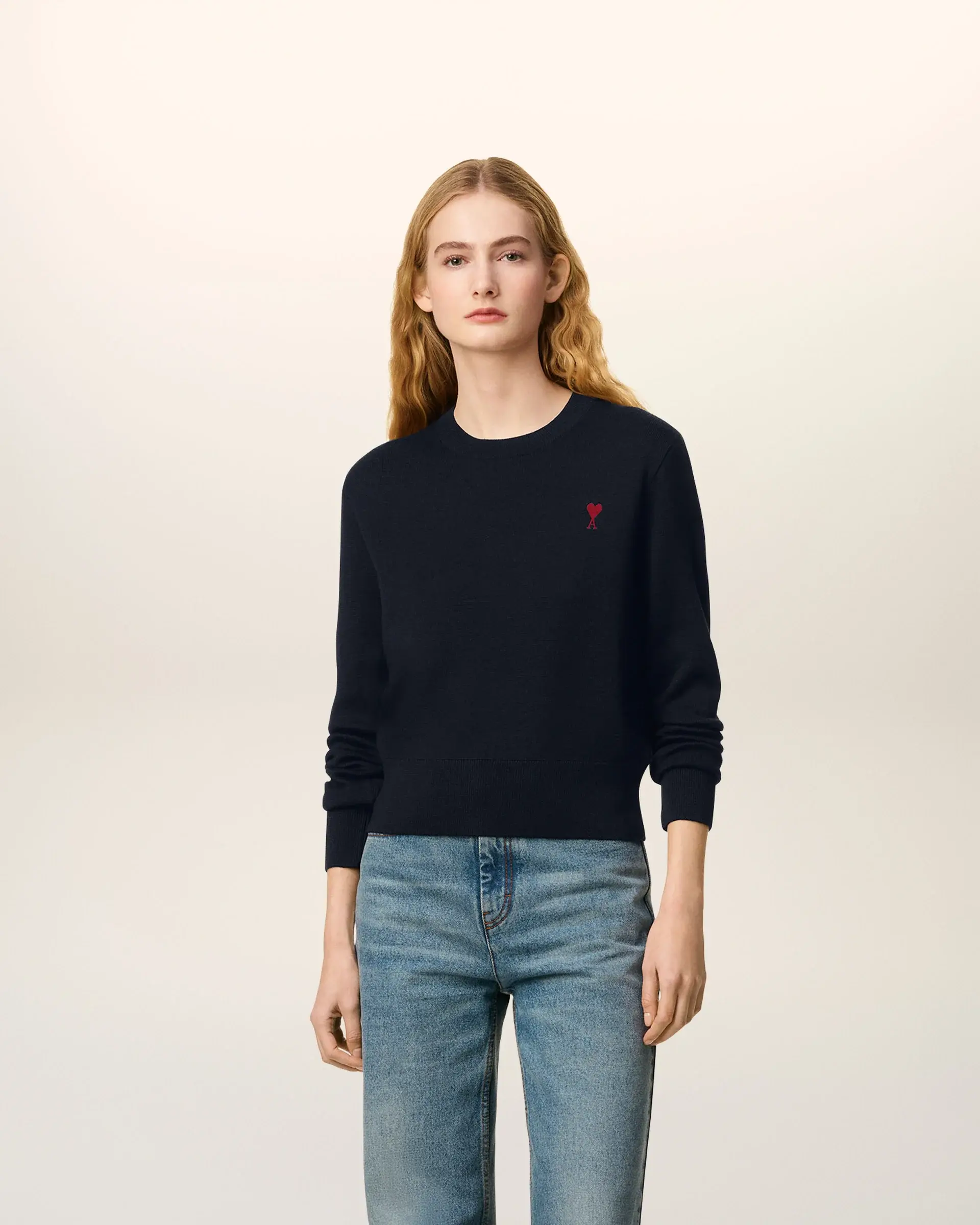 Crewneck Ami de Coeur chest embroidery Jersey stitch 55 cm center back length (size S) Made in Portugal (with love)
