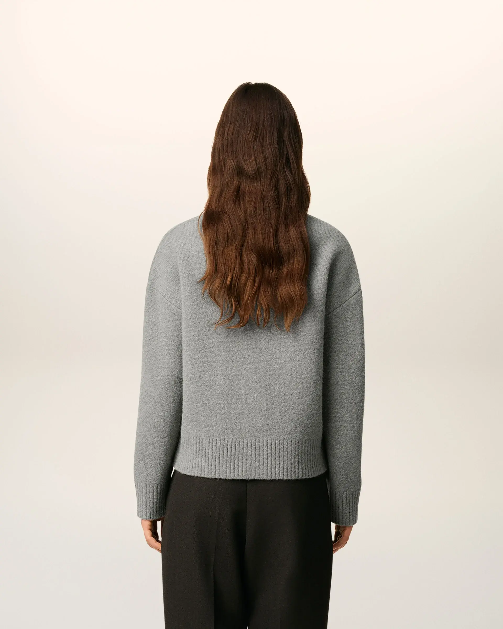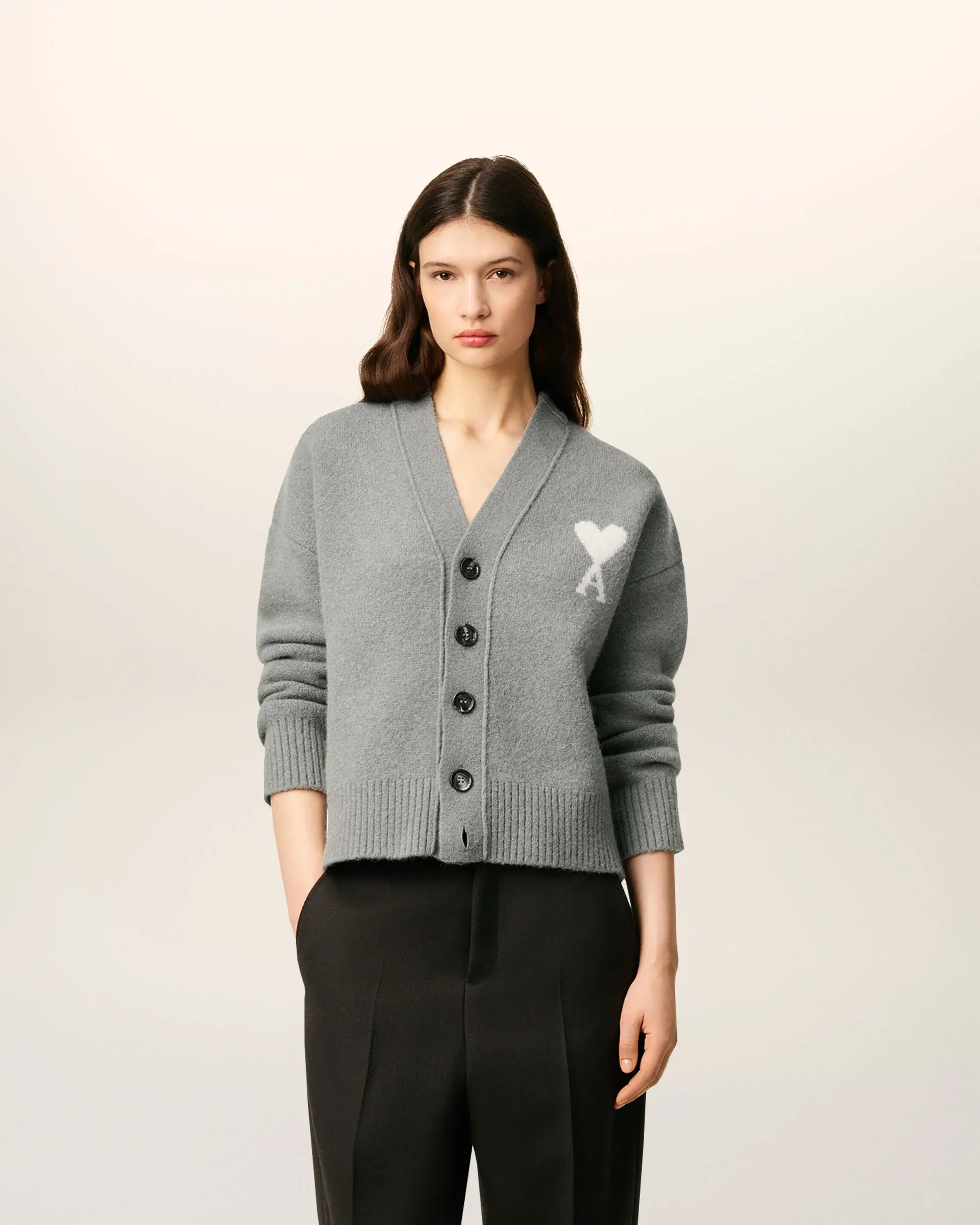 Unisex product "ami" engraved horn buttons Intarsia knitted Ami de Coeur on the chest Interlock stitch 63 cm center back length (size M) 57 cm center back length (size XS) Made in Portugal (with love)