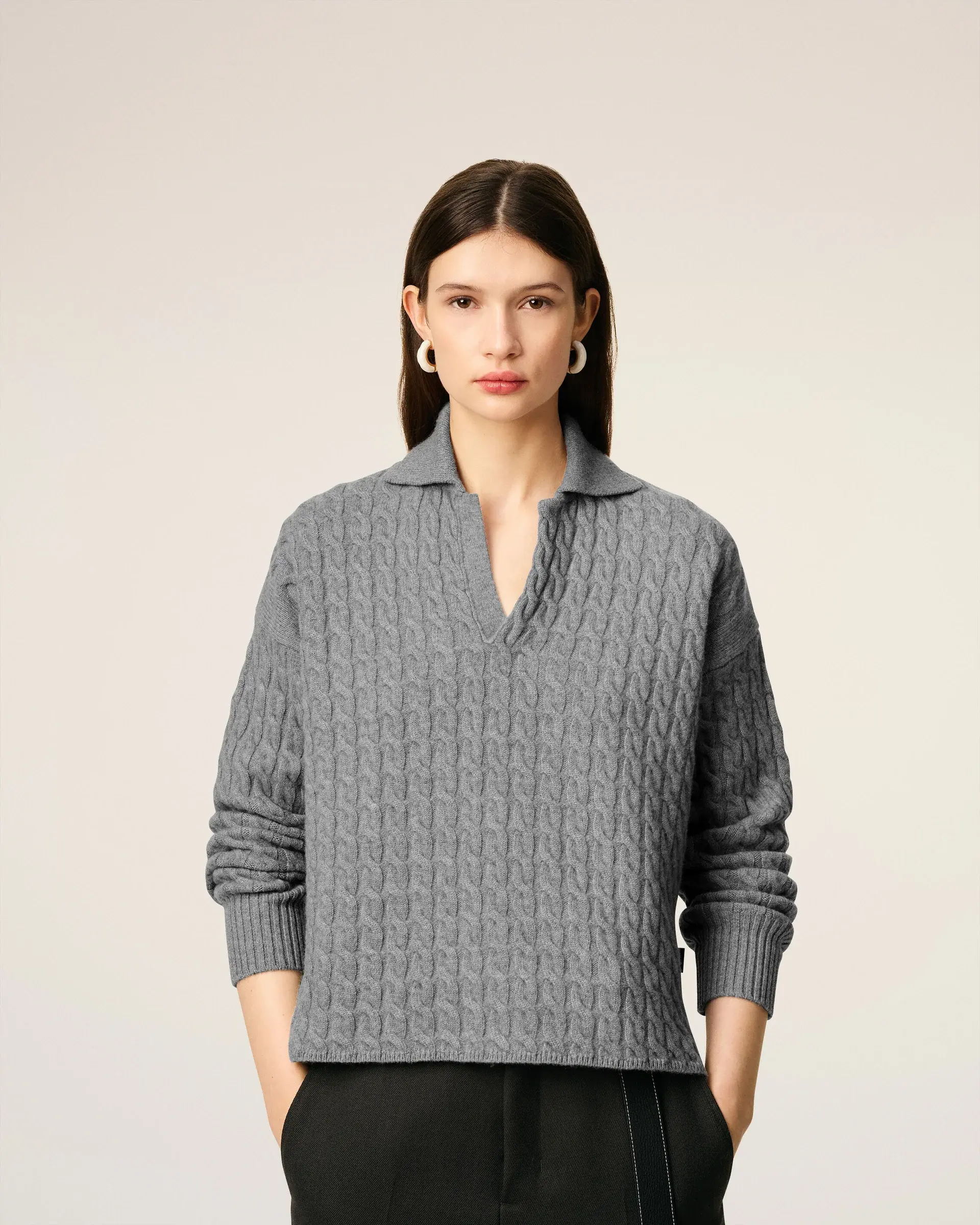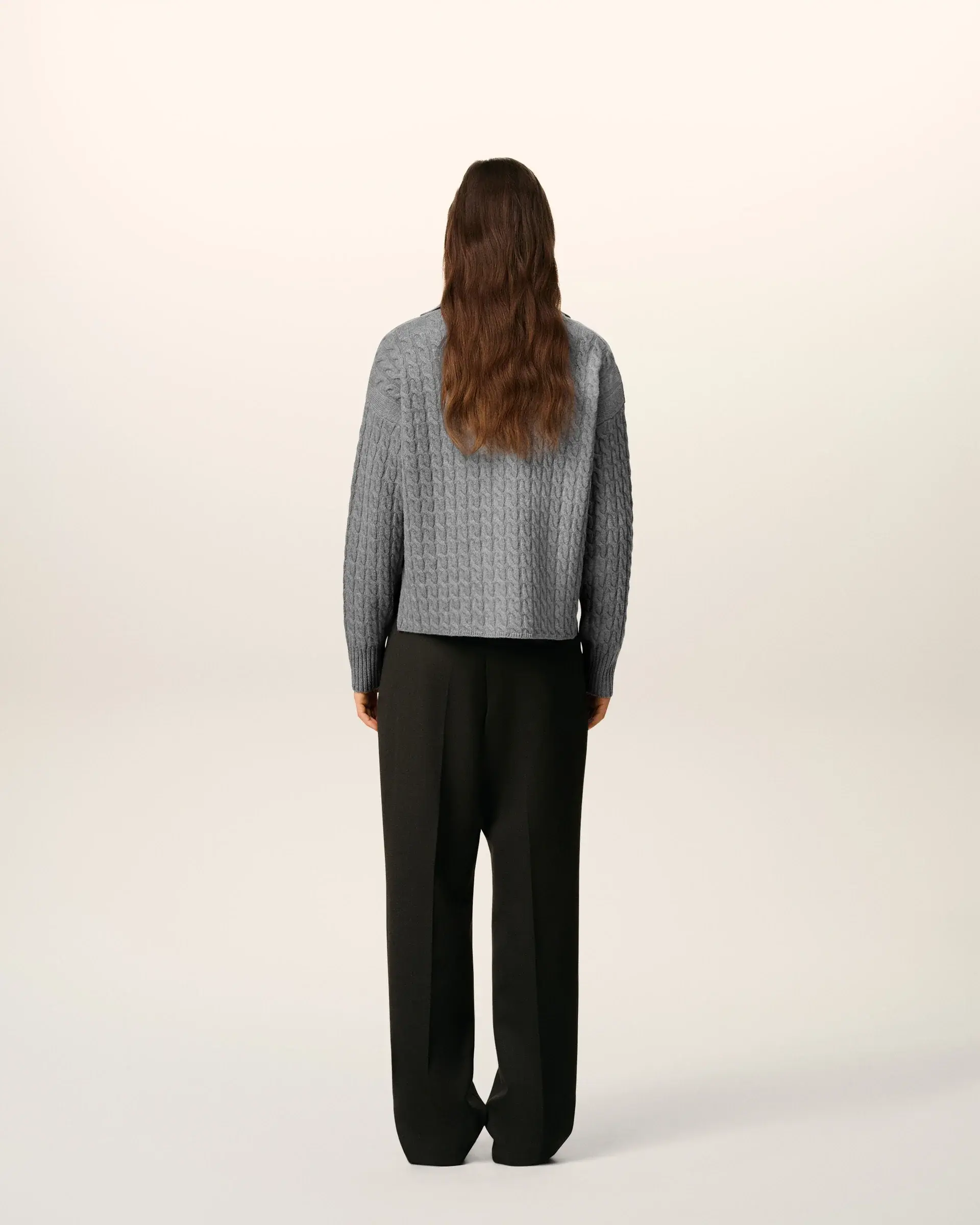 Unisex product Cable stitch Long sleeves "ami" leather label 64 cm center back length (size M) 58 cm center back length (size XS) Made in Italy (with love)