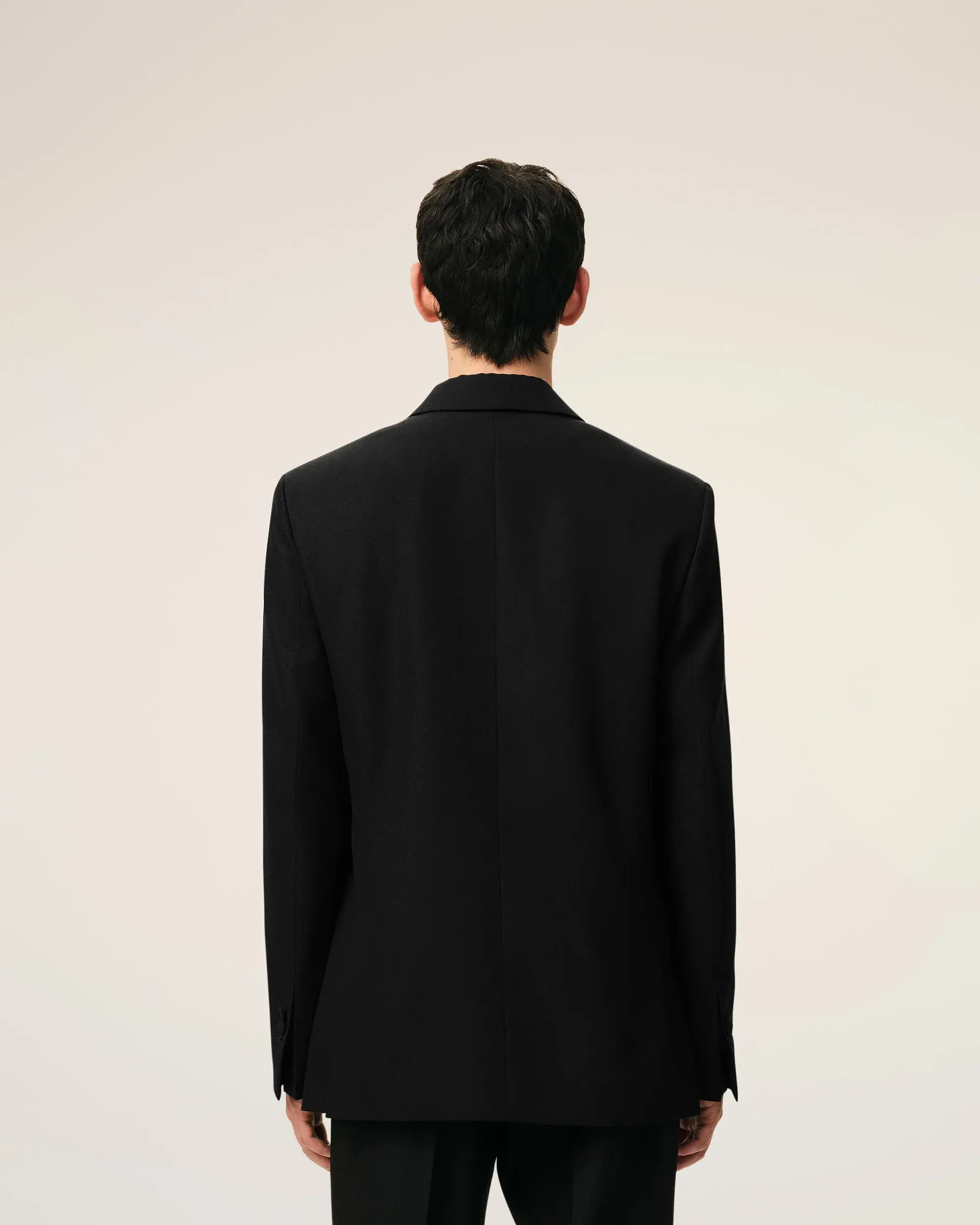 Double breasted jacket in wool canvas.