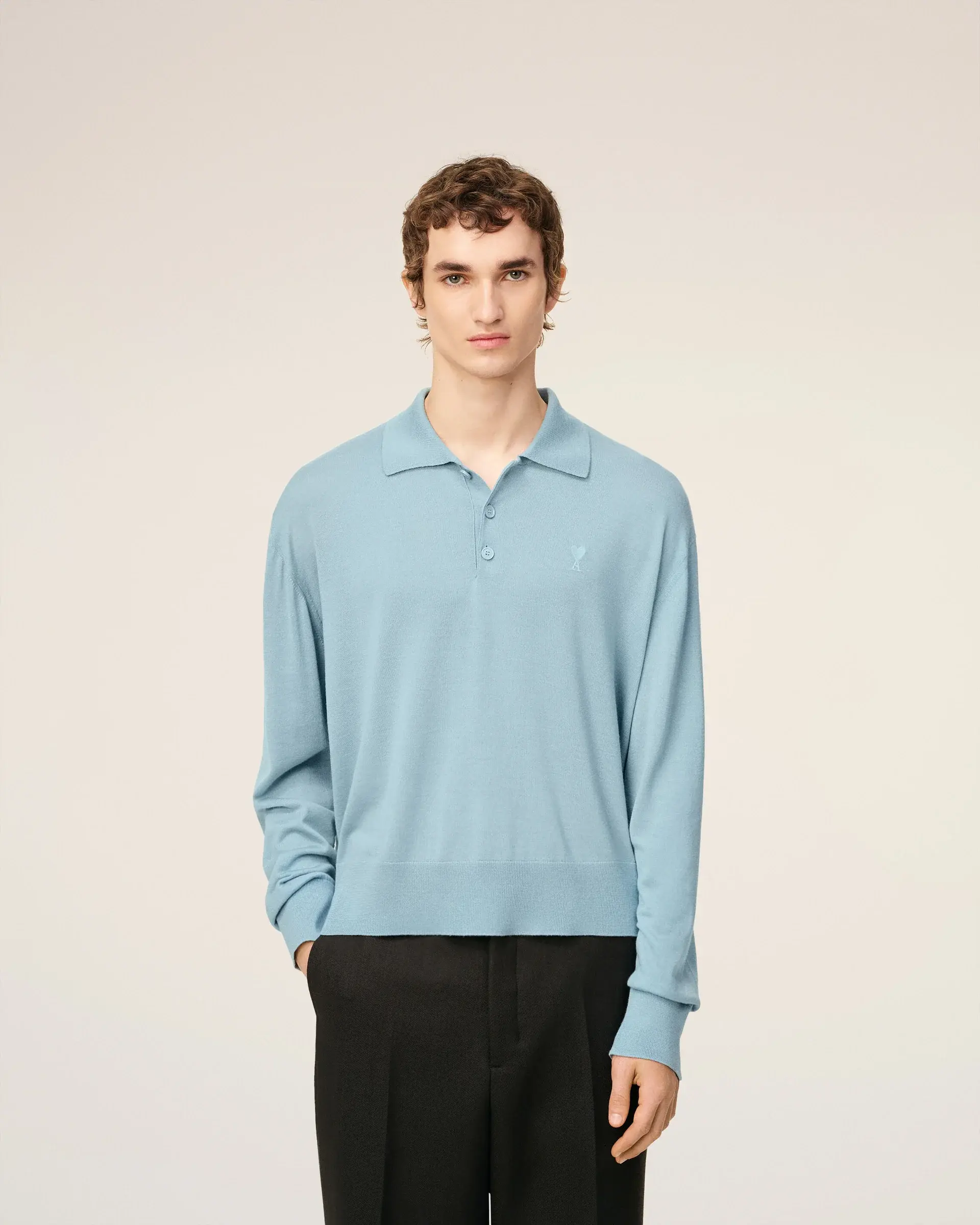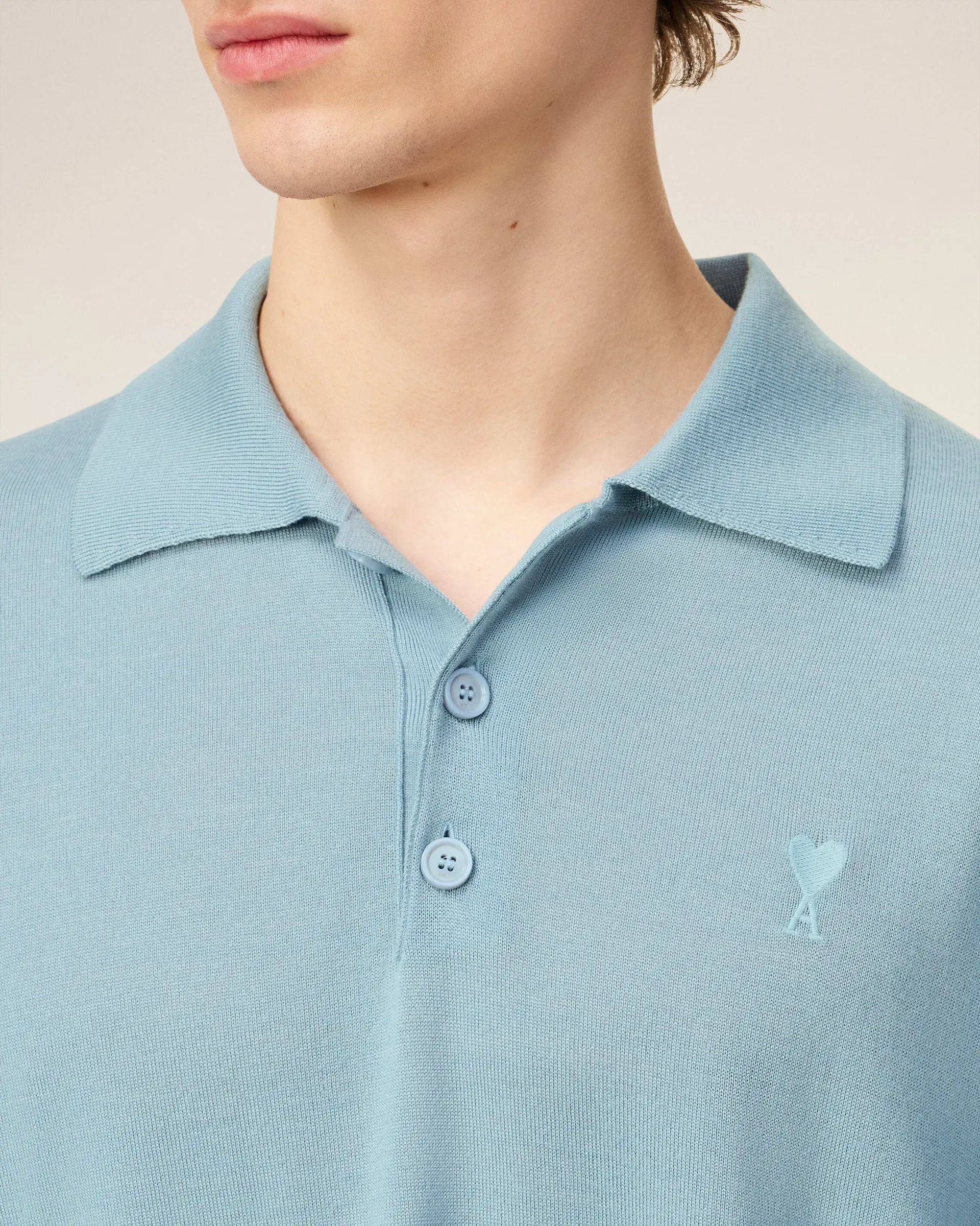 Tonal galalithe buttons Jersey stitch Ami de Coeur embroidery on the chest 66 cm center back length (size M) Made in Italy (with love)
