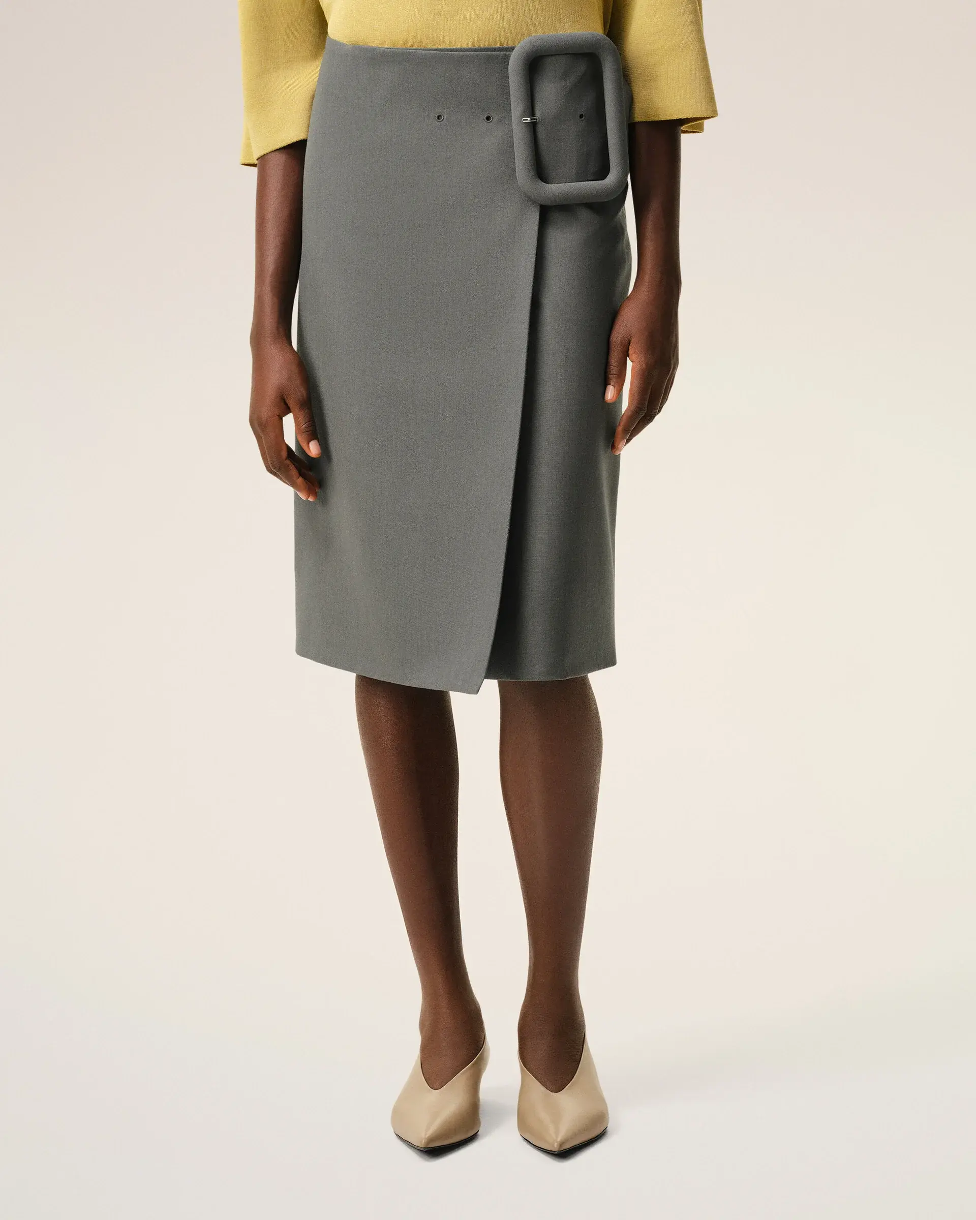 Straight fit Low waist Fully lined Large buckle at waistband Embroidered eyelets Two horn buttons to hold the flap open