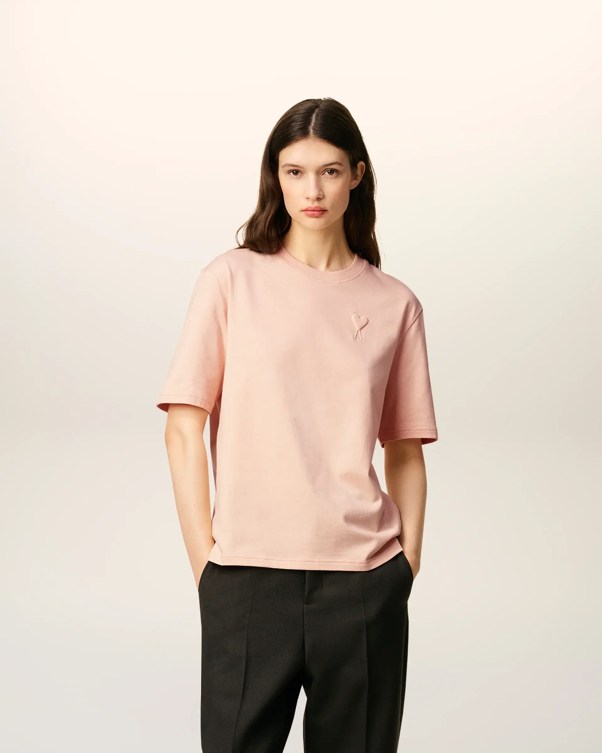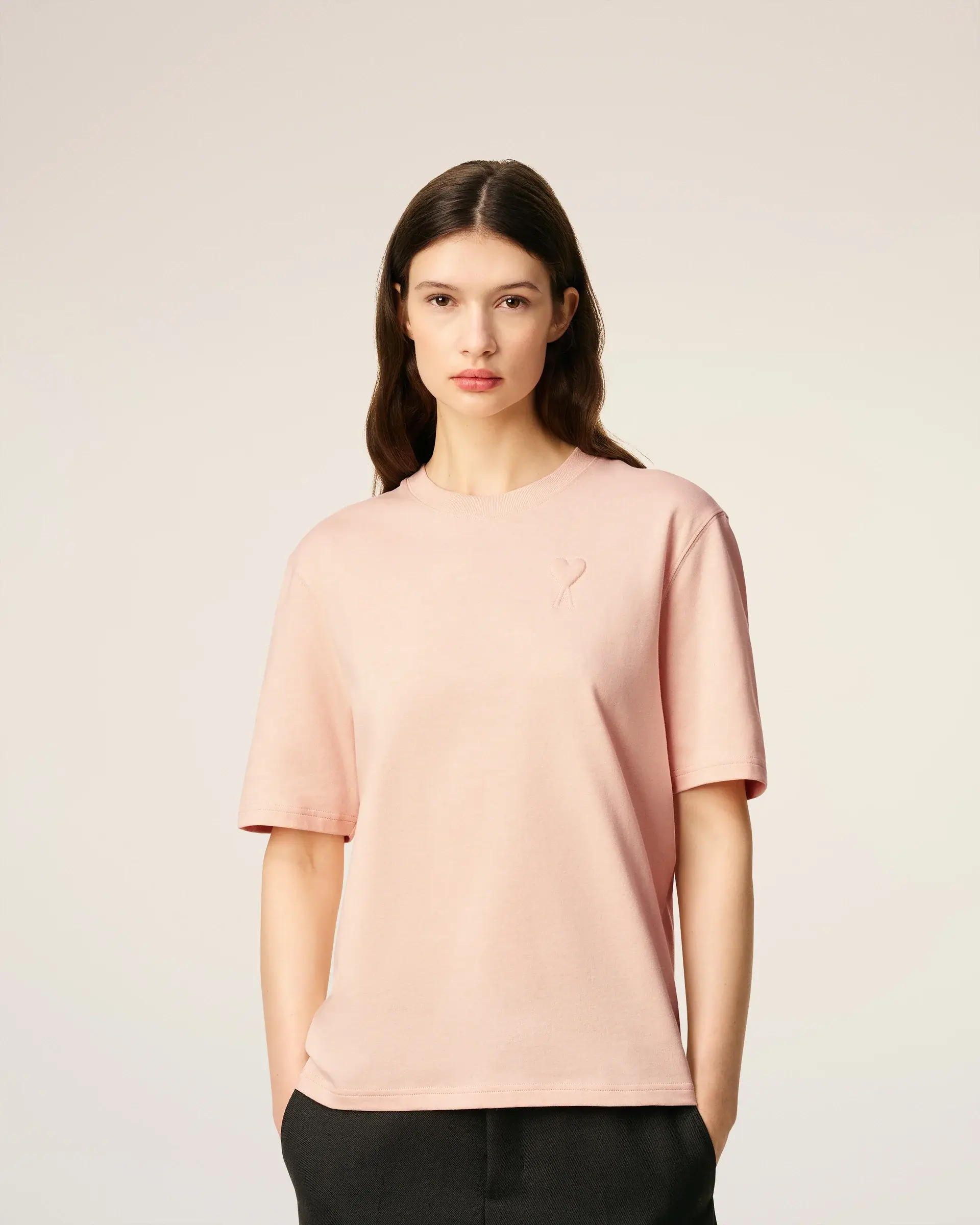 Unisex product Boxy fit Ami de Coeur embossed and topstitched on chest Tonal "ami" embroidery under back 64cm center back length (size XS) 68cm center back length (size M) Made in Portugal (with love)