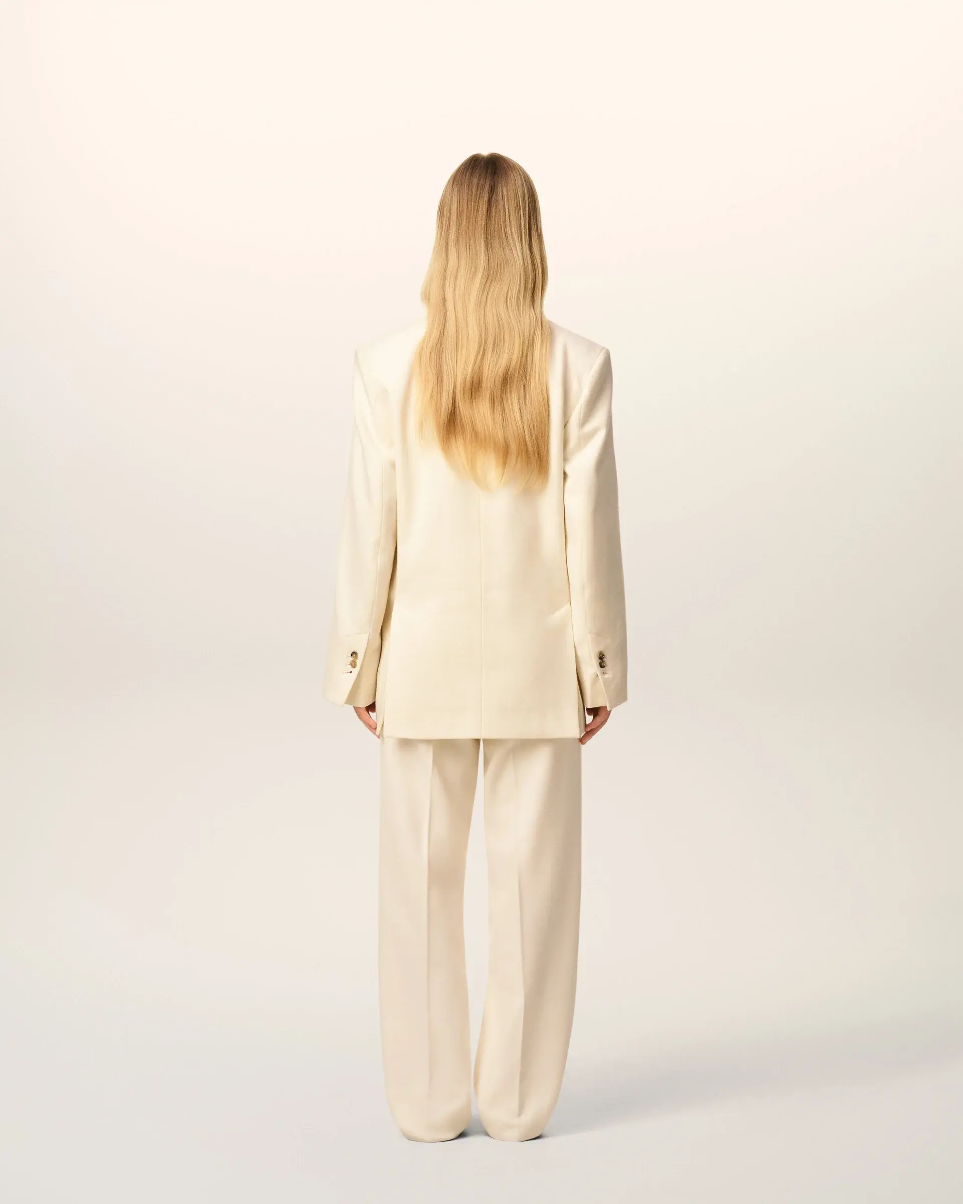 Double breasted jacket in wool flannel.