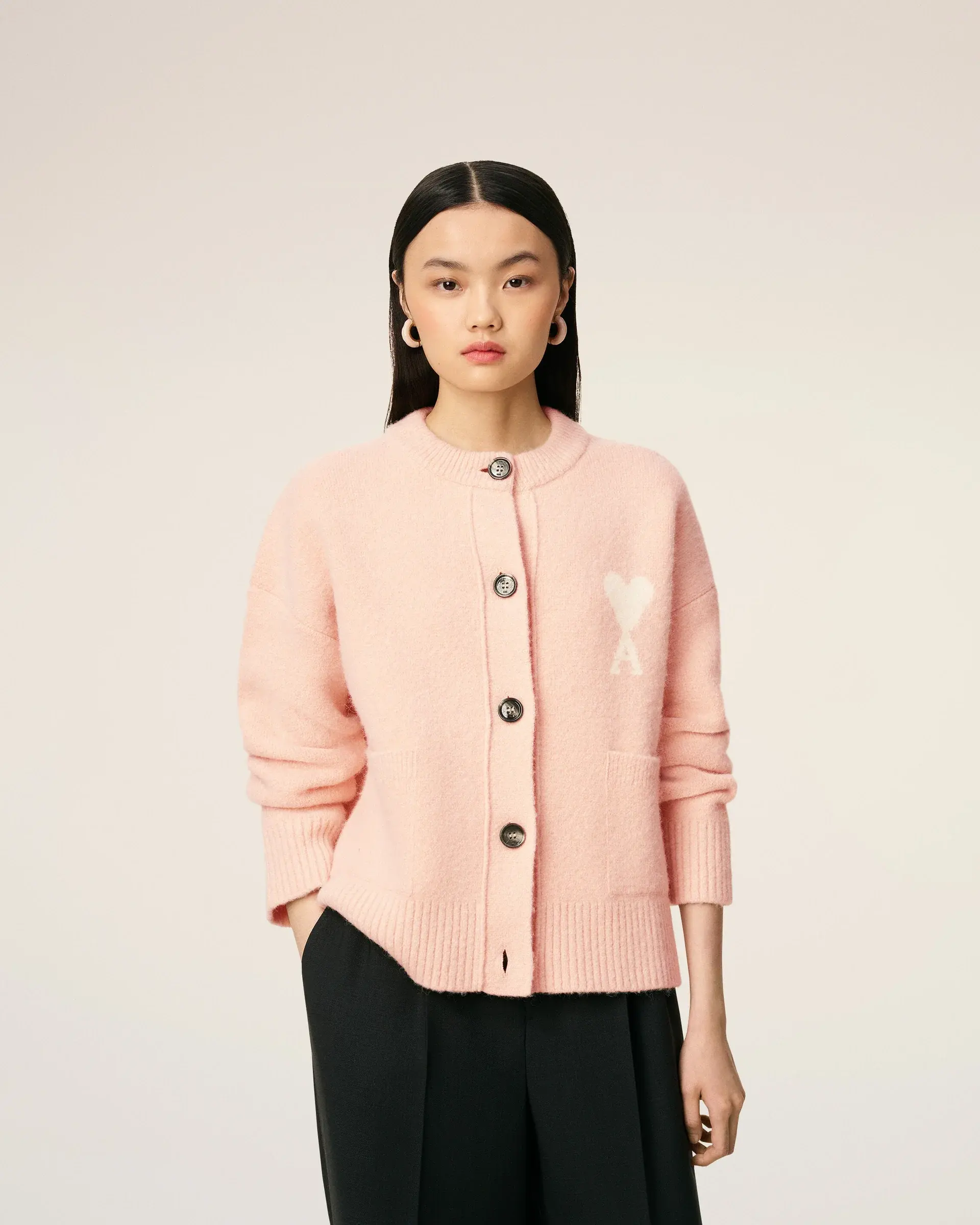 Unisex product "ami" engraved horn buttons Intarsia knitted Ami de Coeur on the chest Interlock stitch 64 cm center back length (size M) 58 cm center back length (size XS) Made in Portugal (with love)