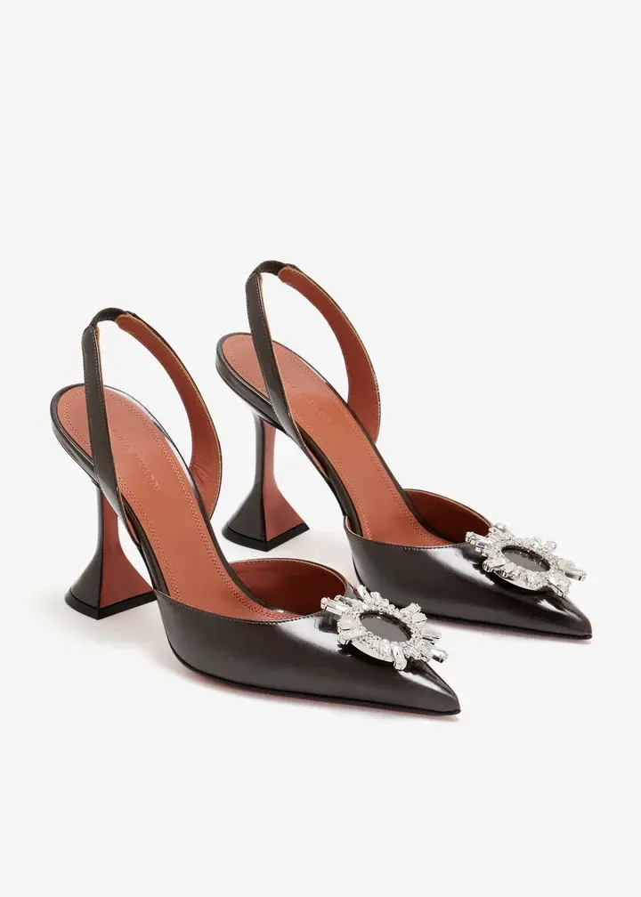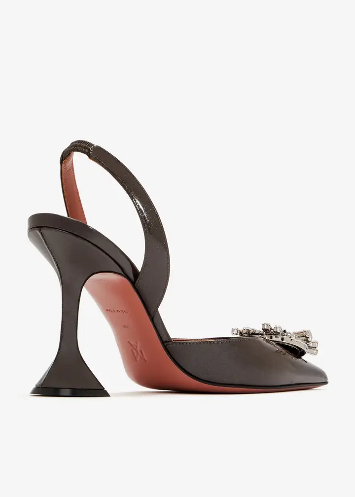 Brown Patent Leather Lining: Leather lining Toe style: Almond-toe Heel height: 9.5cm Made in: Italy Fits small to size, take ½ or a full size larger