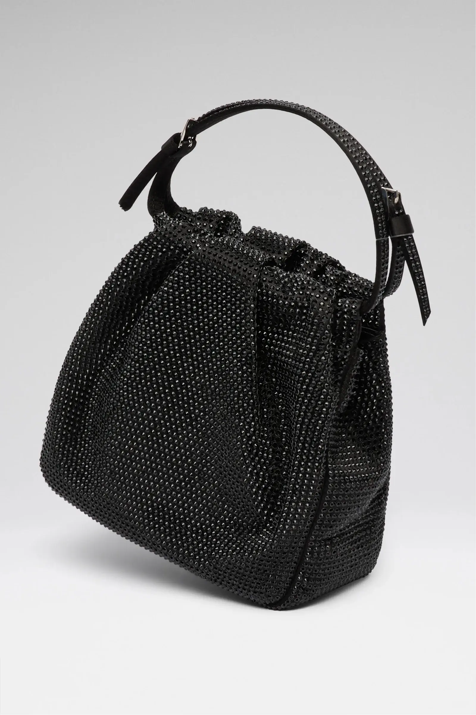 Vittoria Full Crystal Bag Black Satin And Jet Black Crystals