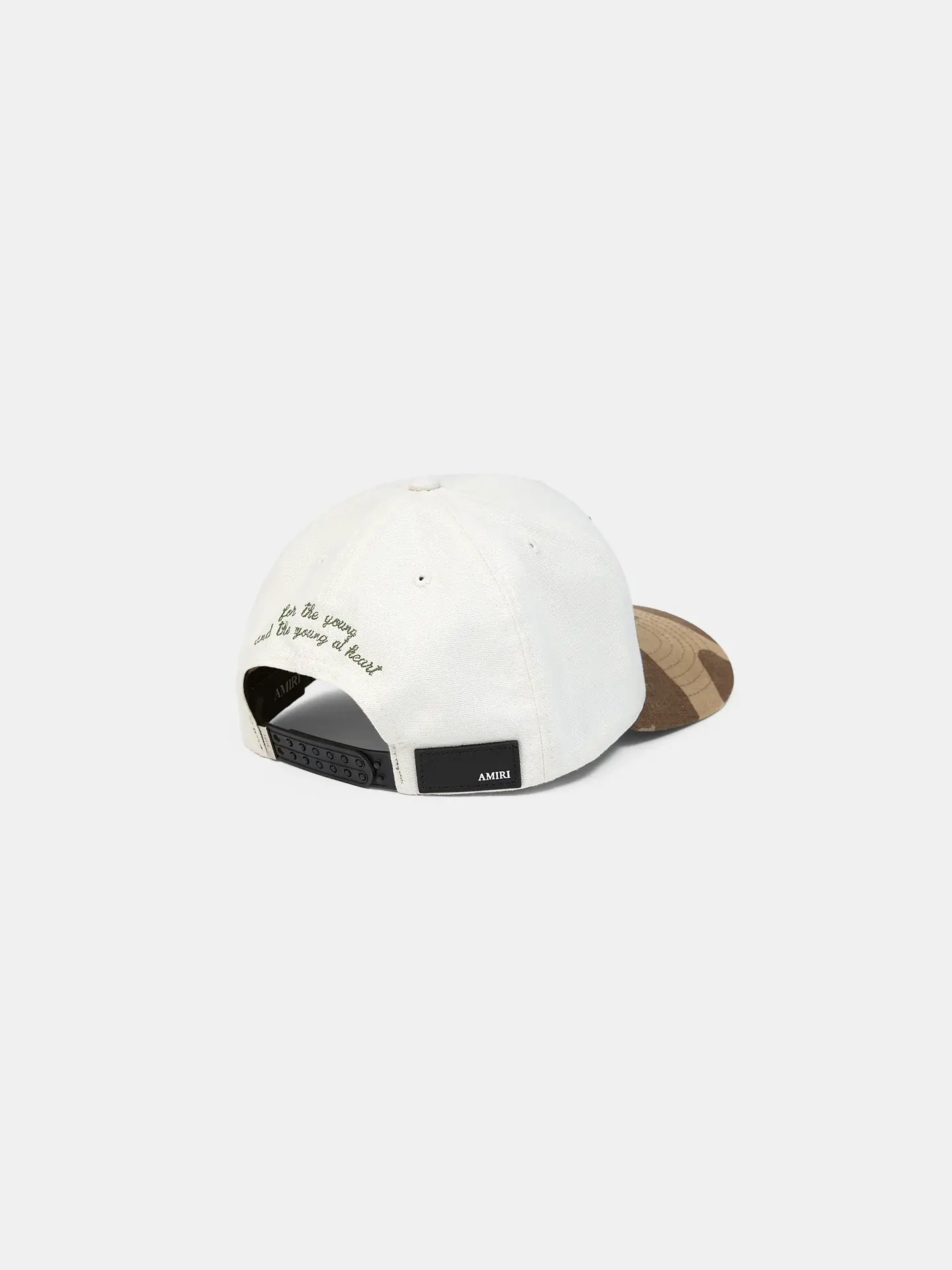 For Pre-Spring 2026, accessories are illustrated with house signature graphics and utilitarian camouflage prints. The MA Outline Camo Canvas Hat is embroidered with the MA icon and finished with a curved brim, double snapback fastening, and an embroidered tribute to dreamers on the back.