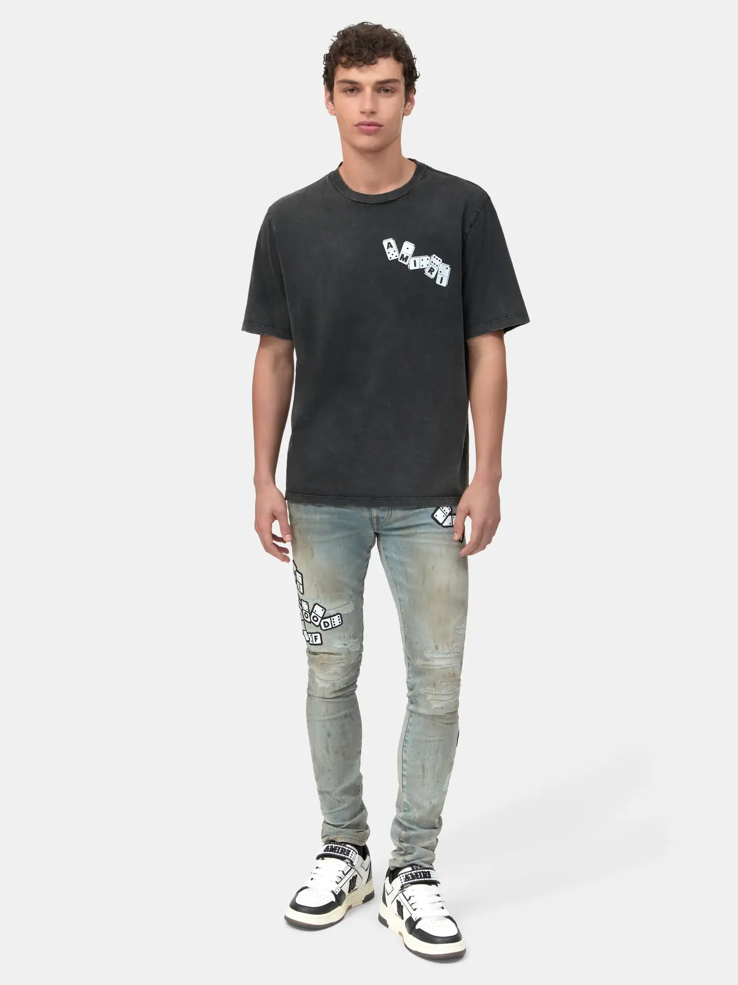 Pre-Spring 2026 jersey tees mimic true vintage rediscovered from former eras. The AMIRI Domino Tee is illustrated with seasonal visuals and distressed in the manner of well-loved vintage.