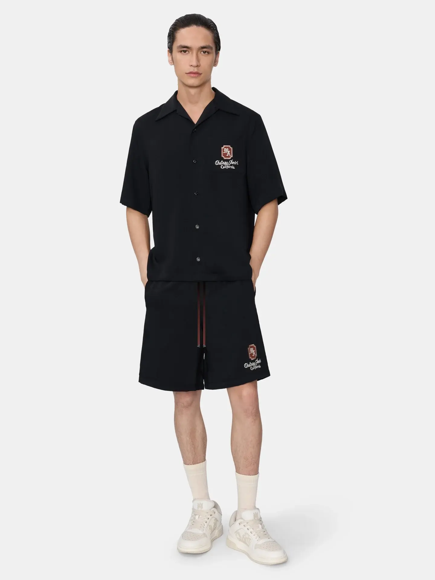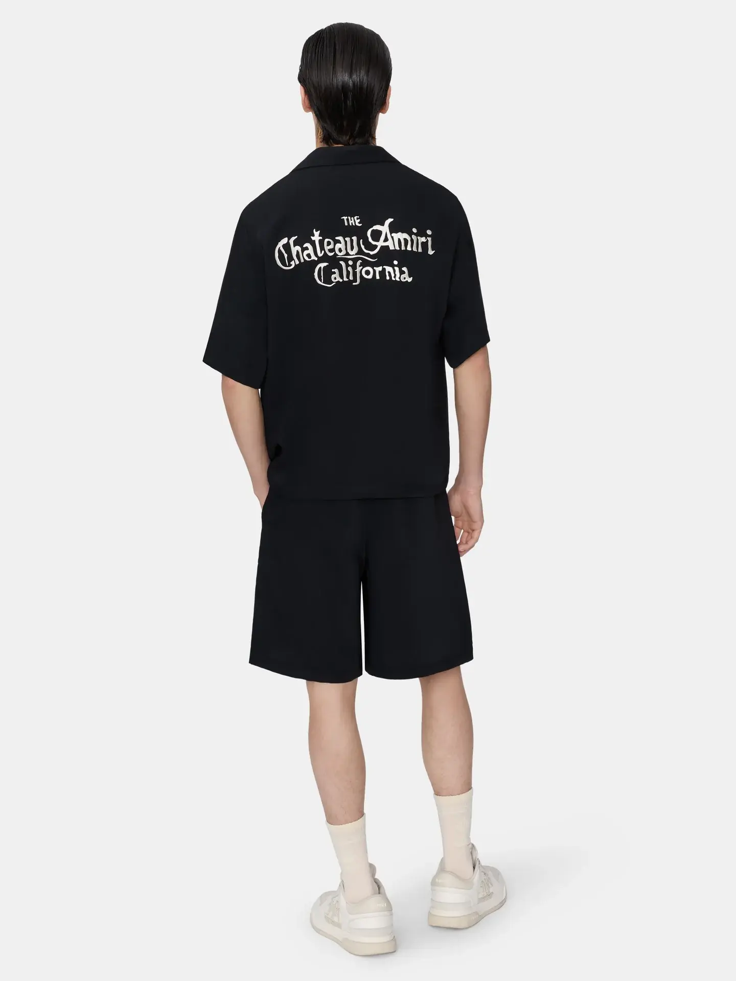 Spring-Summer 2026 introduces Chateau AMIRI, an imagined premier hotel inspired by iconic Hollywood hideaways. The MA Chateau Short is illustrated with seasonal logo embroidery and finished with side seam pockets and an elastic waistband with drawcord.