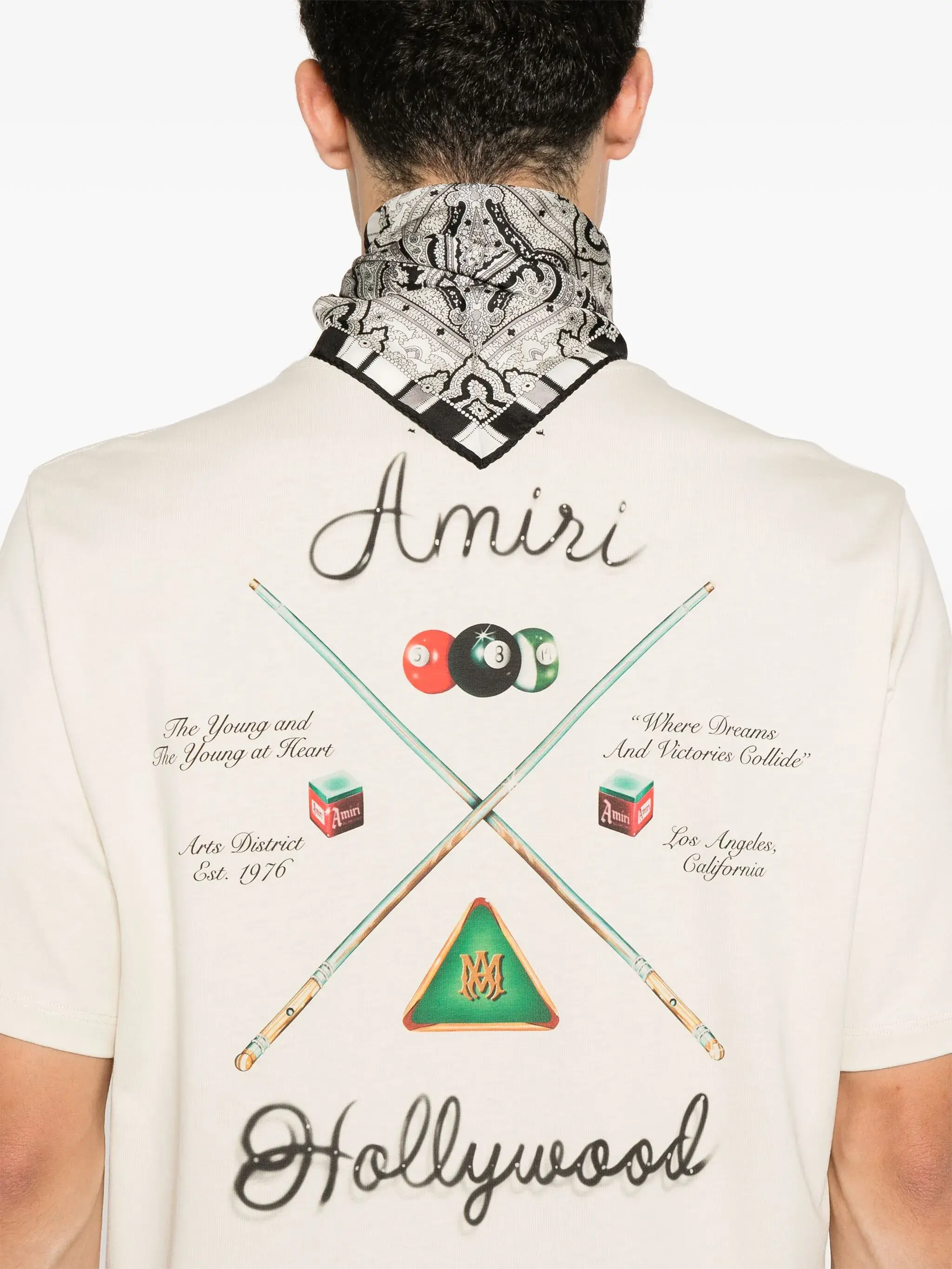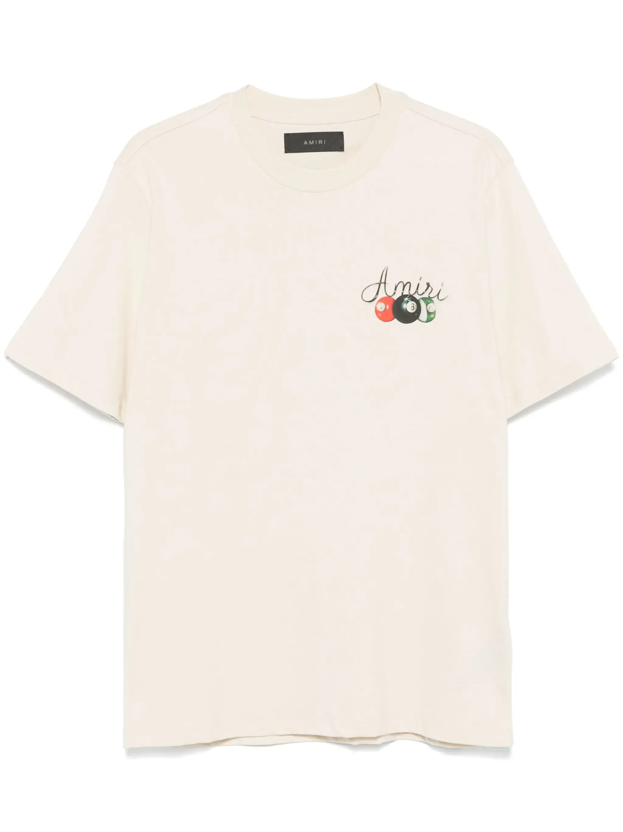 ecru cotton jersey texture Pool Cue motif print crew neck short sleeves logo print at the chest logo print to the rear straight hem