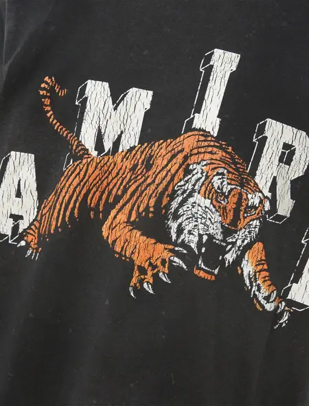 Regular-fit slightly faded short sleeve cotton t-shirt. Crewneck. Graphic logo text and Tiger print at chest.