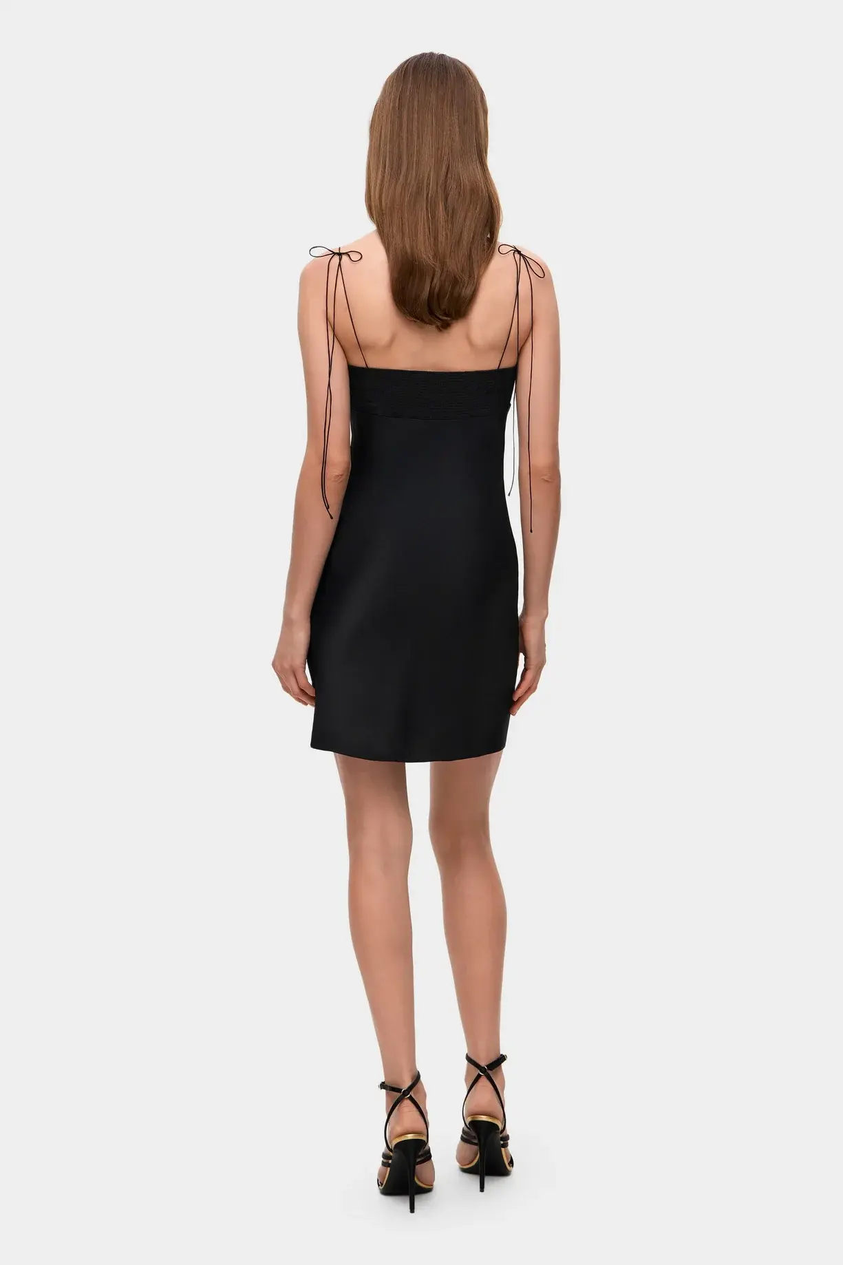 A daring take on our signature Tulip silhouette, this style features sculpted, tulip-shaped cups that frame the décolletage, balanced by delicate self-tying straps for an adjustable fit. Crafted from a fluid satin, the fabric drapes effortlessly over the body. The abbreviated length leaves legs on display, balancing delicate details with unapologetic allure.