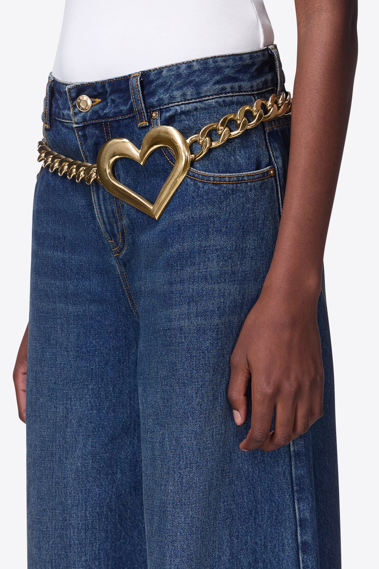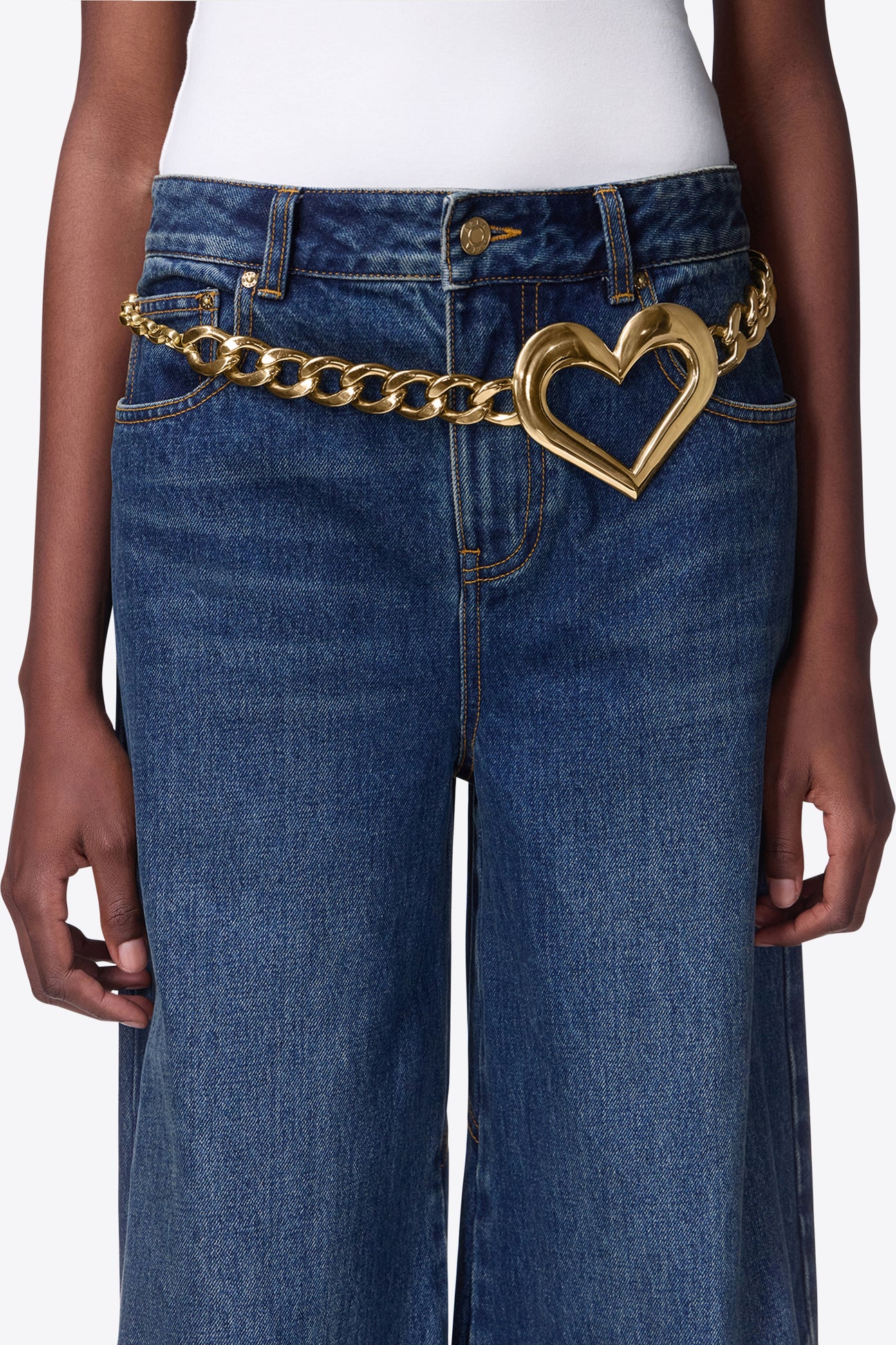 Heart chain belt of brass with lobster claw clasp and 'A' charm at the end. Available in Gold.