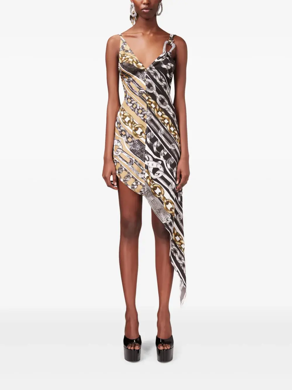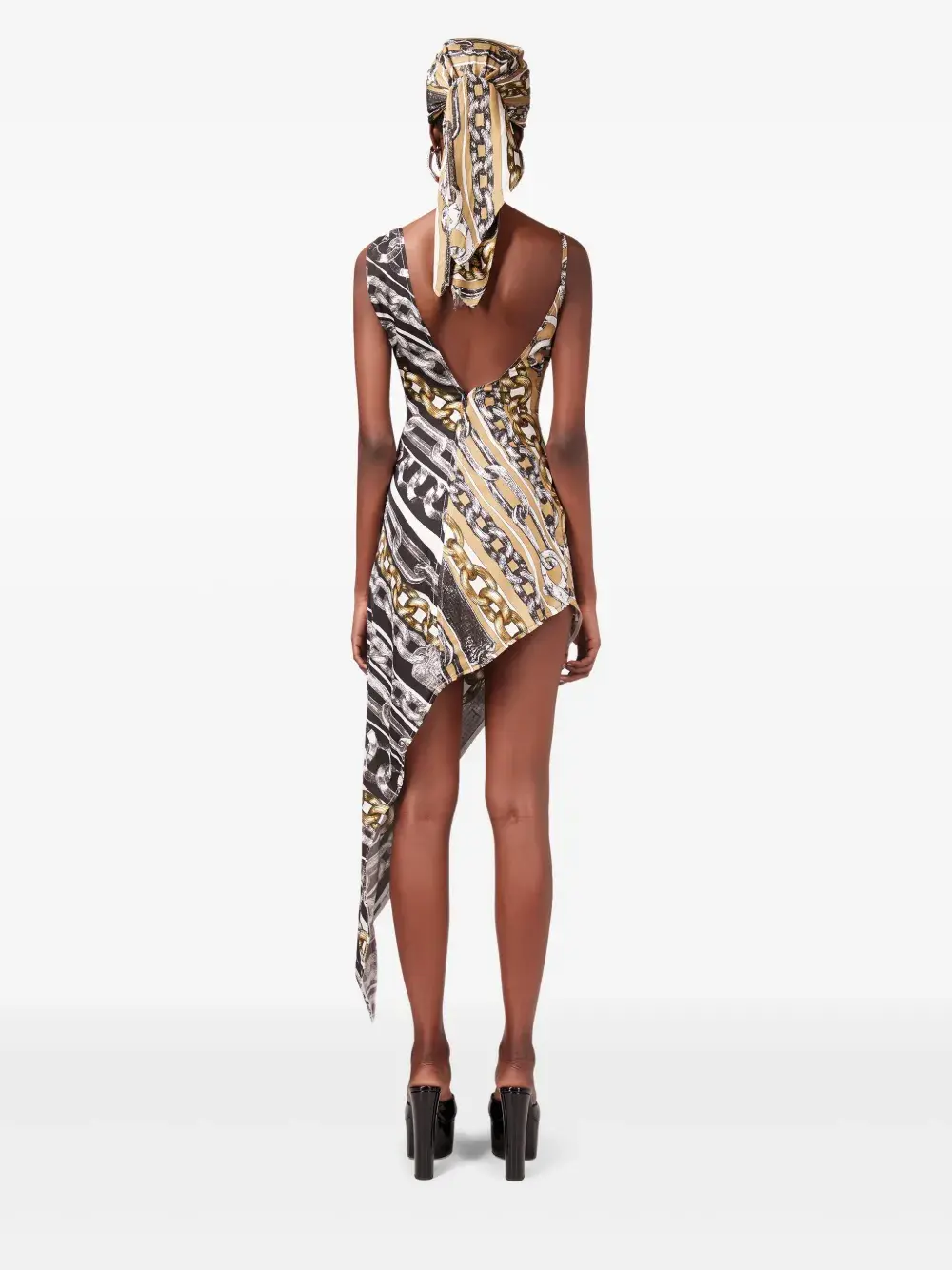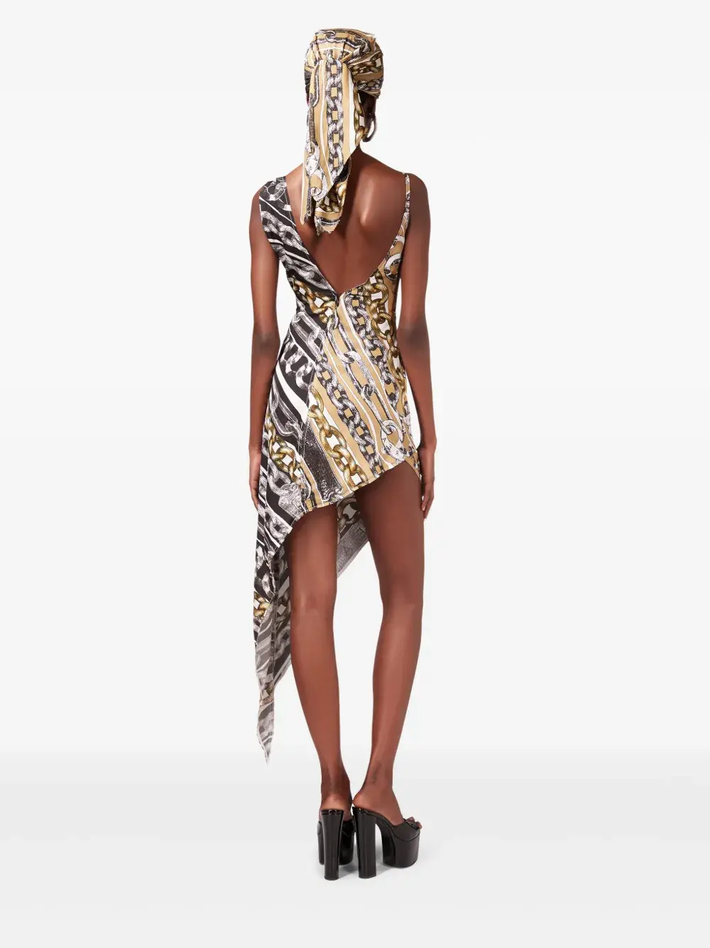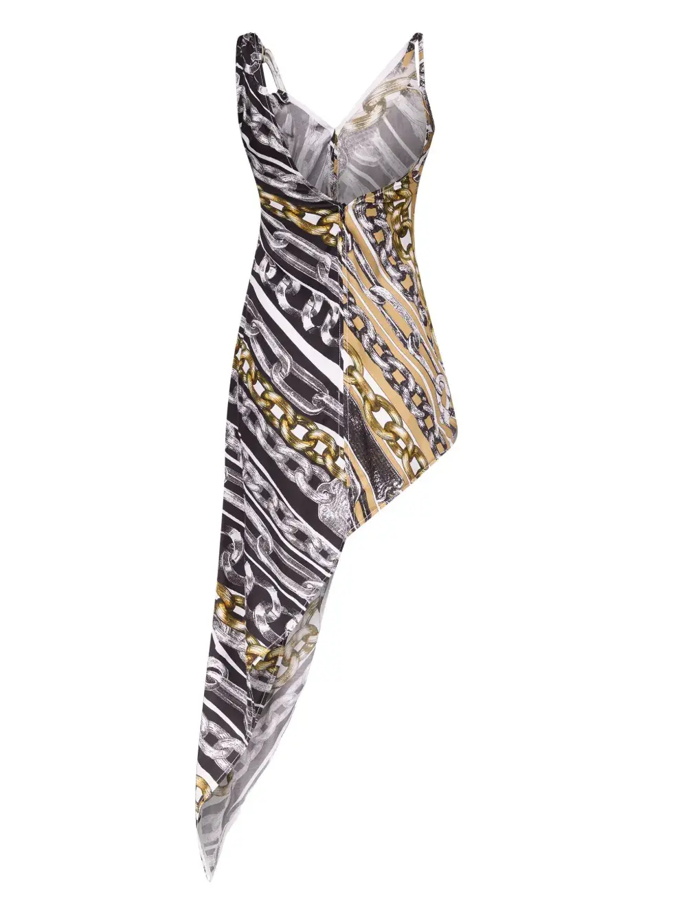 -black -concealed rear zip fastening -V-neck -V-back -asymmetric hem