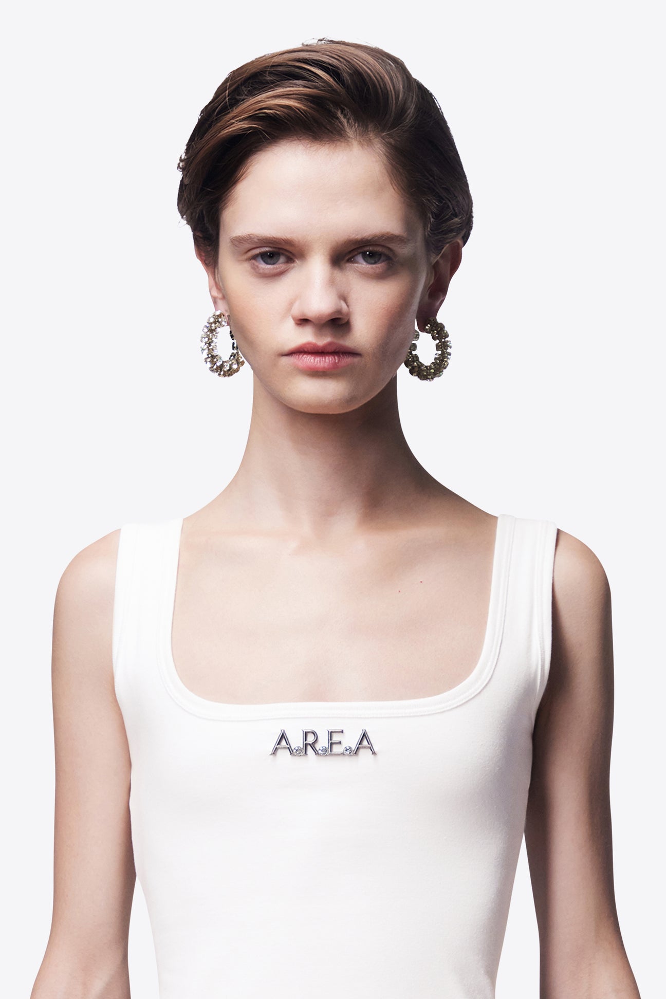 Crystal hoop earring with post back closure. Hoop diameter measures 4.5cm. Available in Silver & Gold.