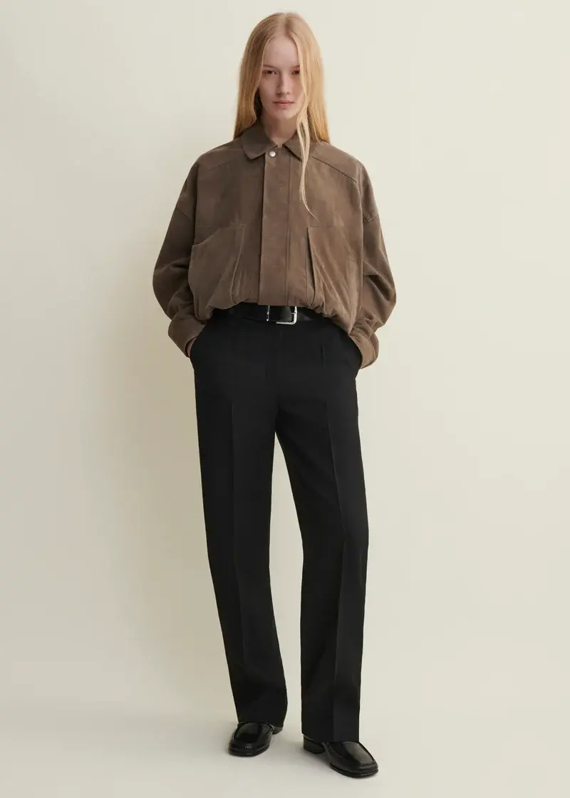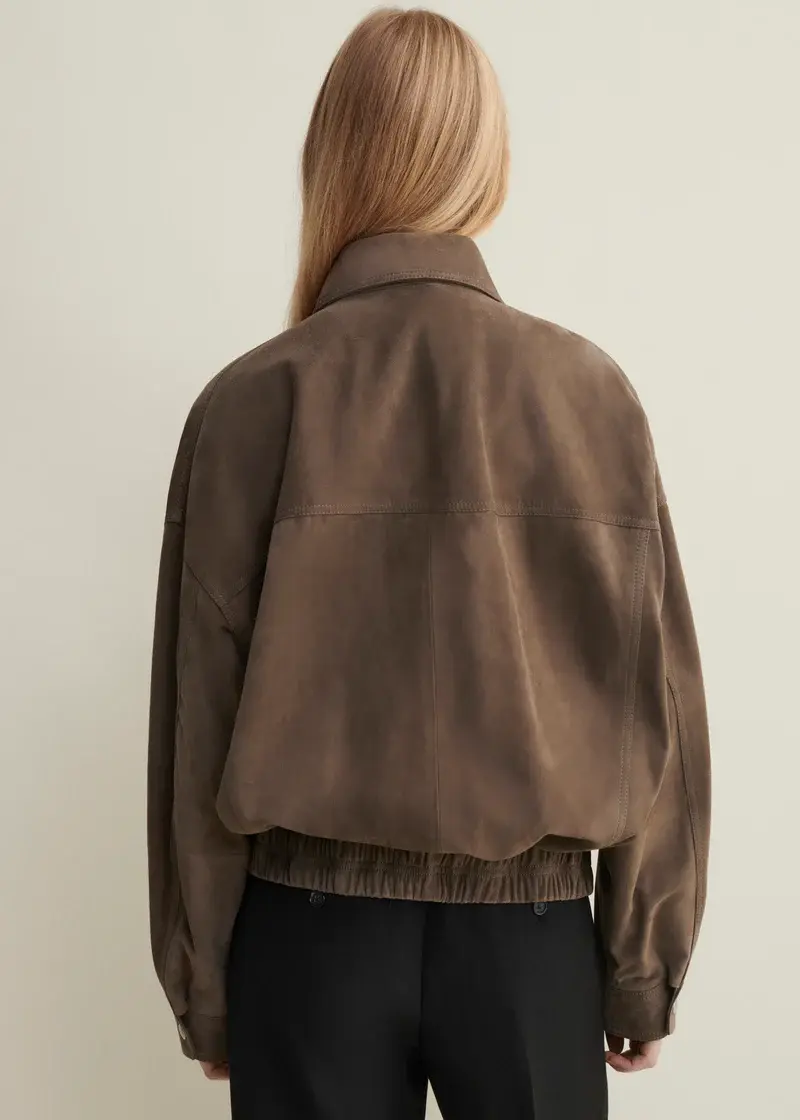 The FREDERICA | Suede Bomber Jacket puts a modern twist on a timeless classic. Made from 100% lamb suede, it offers a soft, refined texture with a relaxed yet structured fit. The minimalist silhouette and subtle details create an effortlessly chic look. A versatile jacket that can be worn both casually and elegantly.