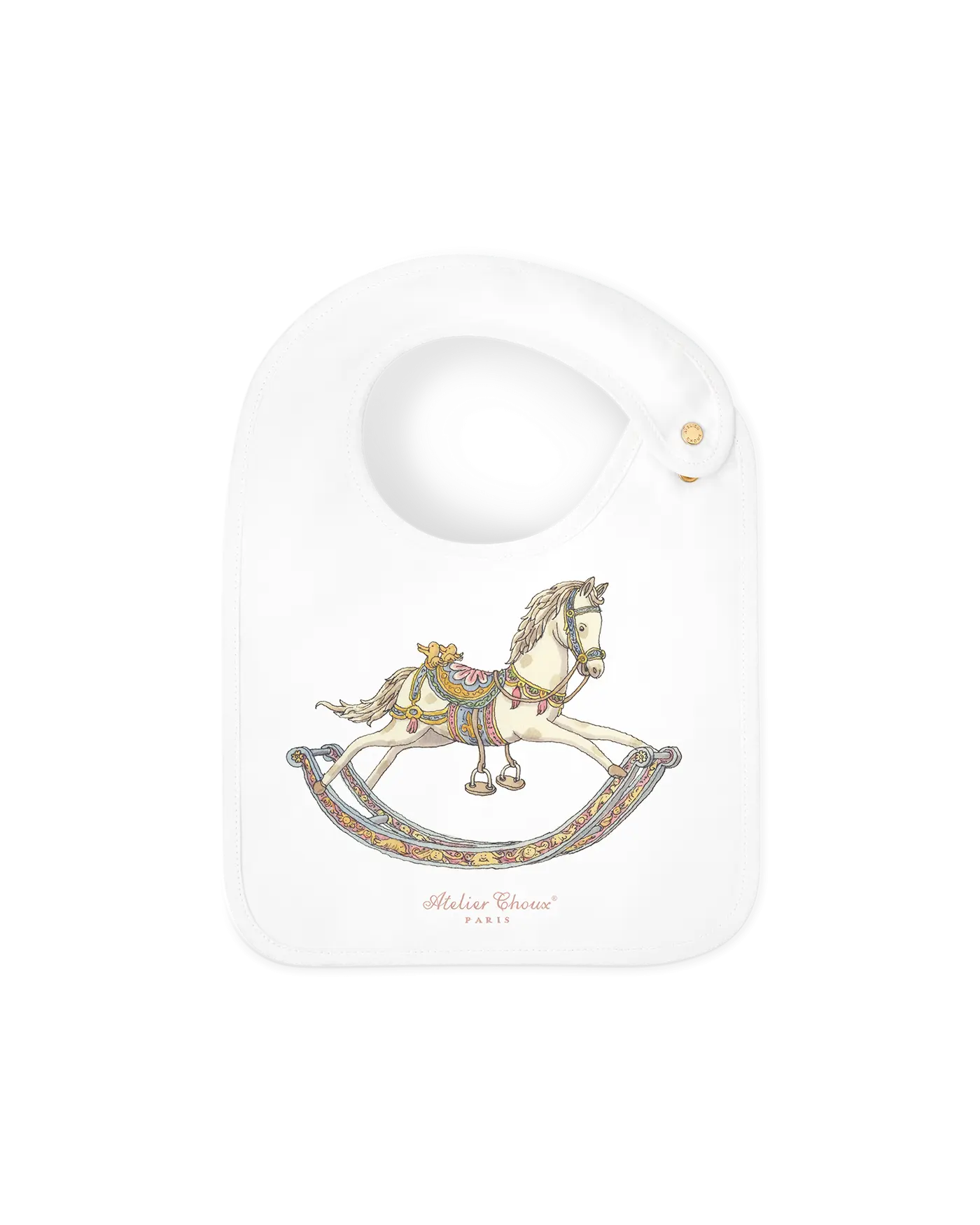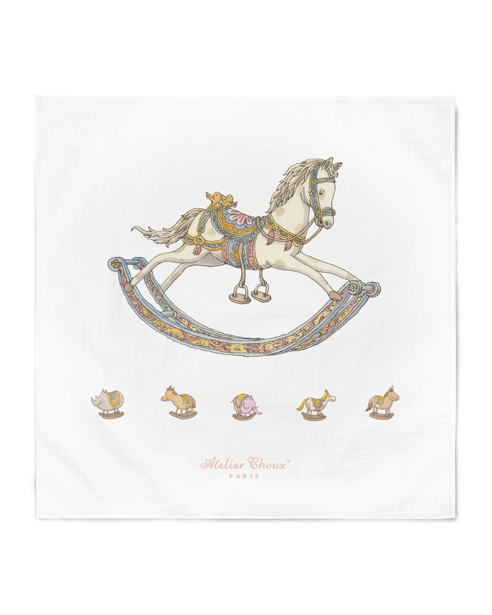 The Atelier Choux Carré & Bib Set – Rocking Horse is a refined gift set featuring our iconic Carré and a matching satin bib. This duo blends refined elegance with everyday practicality, making it the perfect gift for newborns and their style-savvy parents.