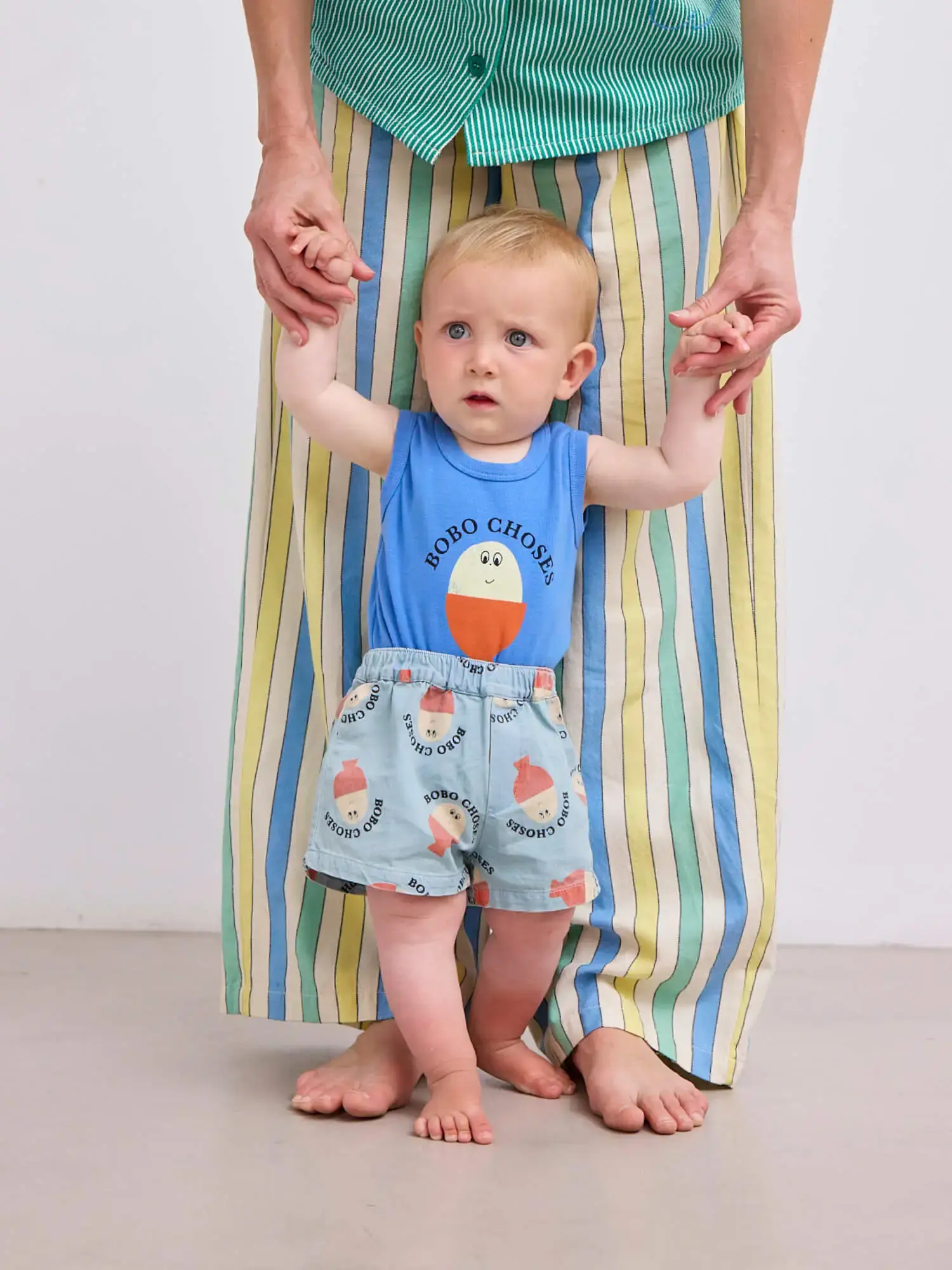 A soft blue body that invites movement and discovery in every moment. Made from 95% organic cotton and 5% elastane, it offers a gentle stretch for a slim yet comfortable fit. Featuring a wide round neck and practical crotch snap fastening, it’s ideal for active little ones. Crafted responsibly in Spain, with care for the future.