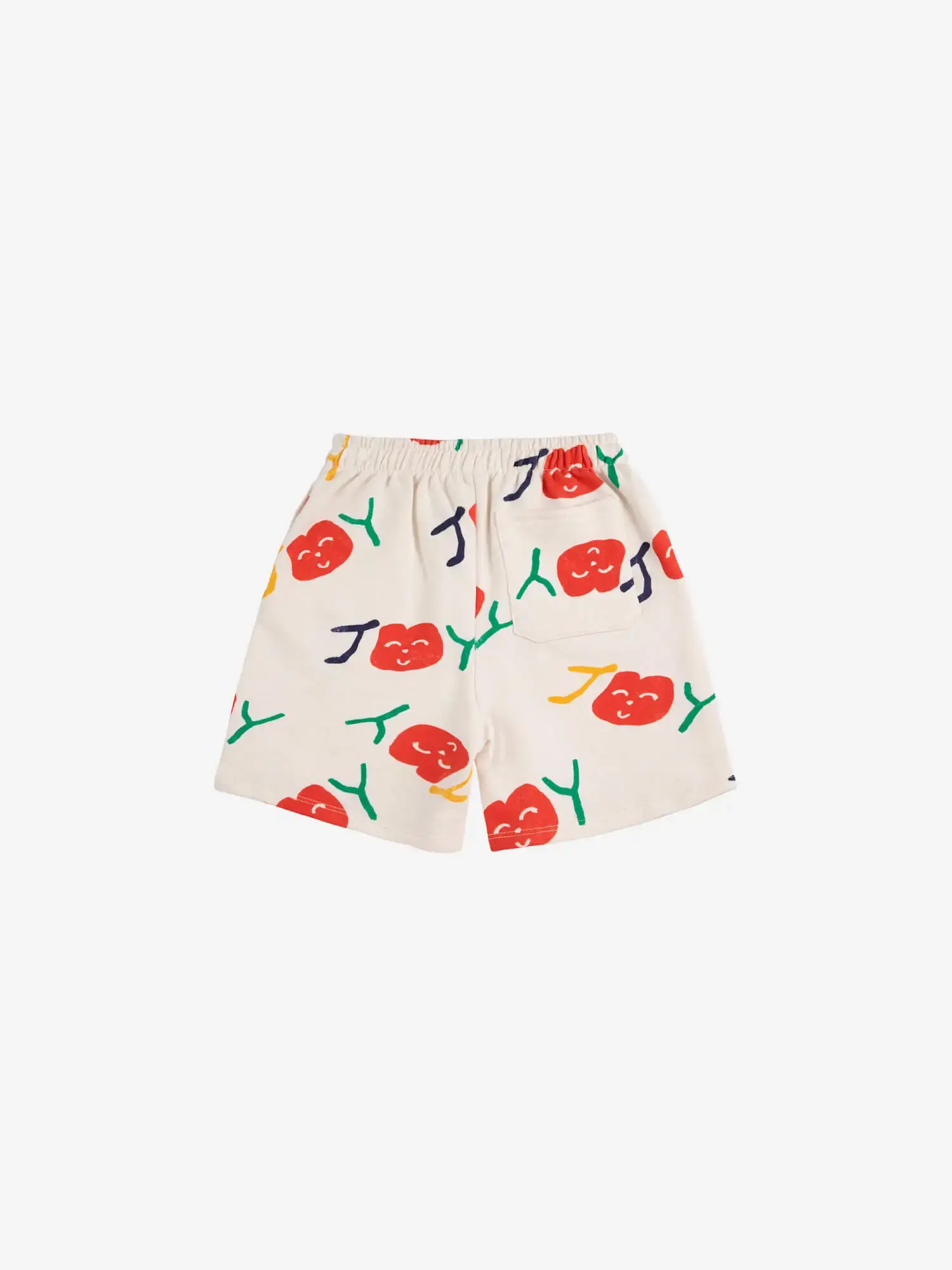 Soft and cozy, these offwhite shorts provide all-day comfort. Made from 88% organic cotton and 12% recycled cotton with fleece, they feature a regular crotch, an elasticated waistband, and a loose fit. Adjustable drawstring, over-the-knee length, and seam pockets complete the design. Made in Spain.